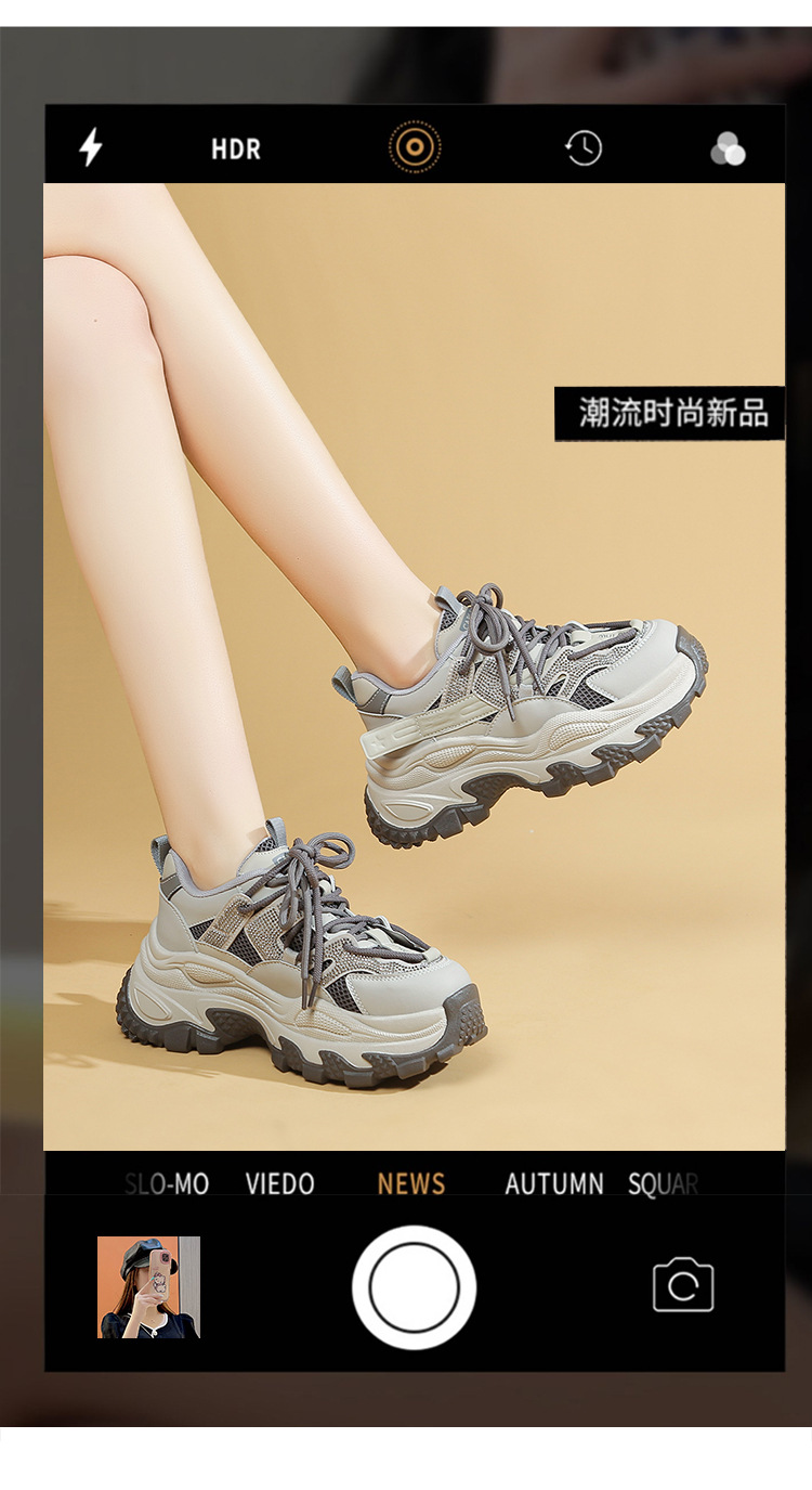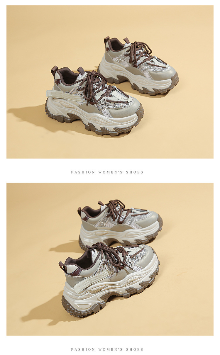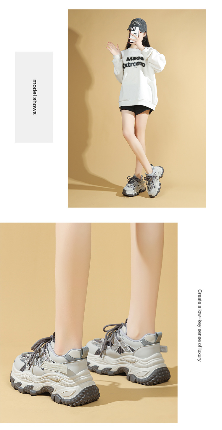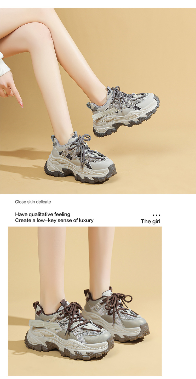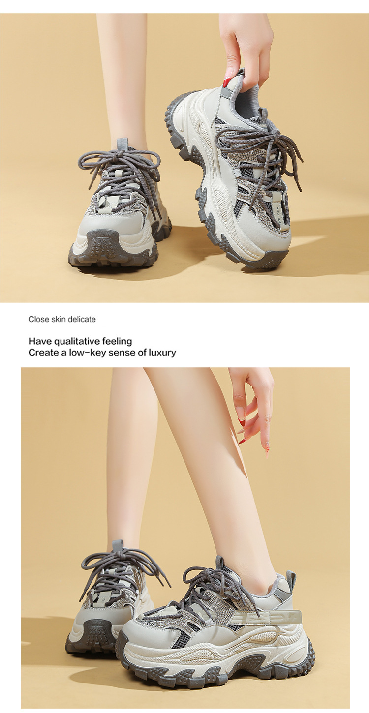 토레 신발 여성 2025 봄 새로운 라인스톤 두꺼운 단독 하이힐 신발 올매치 캐주얼 스포츠 메쉬 패션 런닝 슈즈