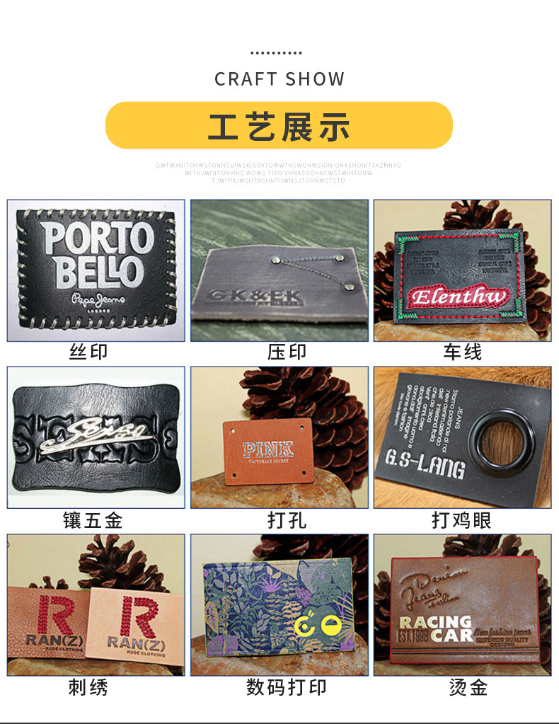 8 캐릭터 가죽 버클 로프 소가죽 드롭 접착제 울트라 파이버 2 안 오일 에지 UV 인쇄 처리 스크린 인쇄 펀치 3-4 개의 구멍을 사용하여 가죽 라벨을 조정합니다.스토어 가기