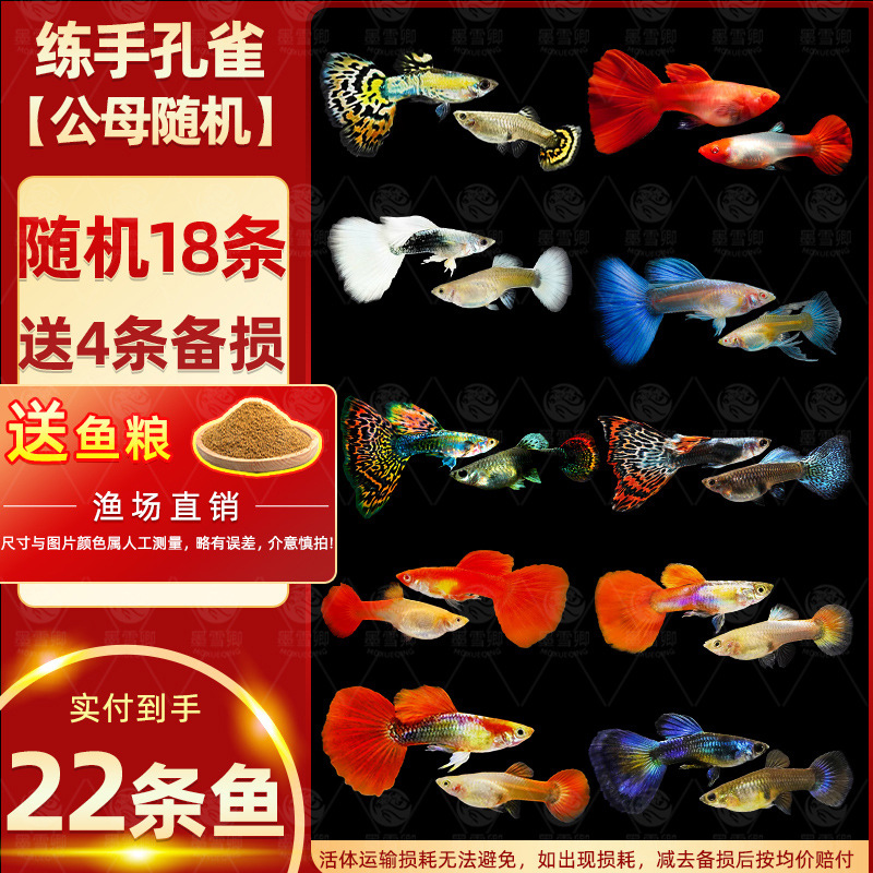 • 프리미엄 공작 물고기 18마리 무료 예비 부품 4마리 및 무료 생선 사료