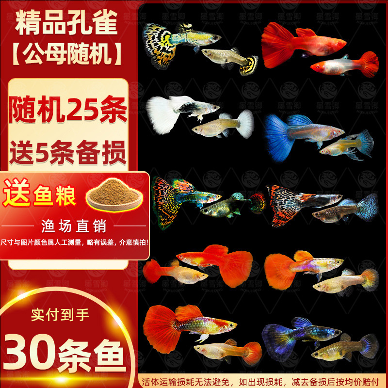 • 고급 공작새 물고기 25마리 무료 예비 부품 5마리 및 무료 생선 사료