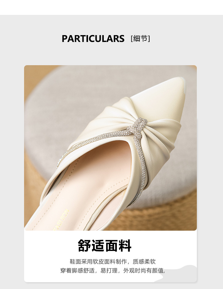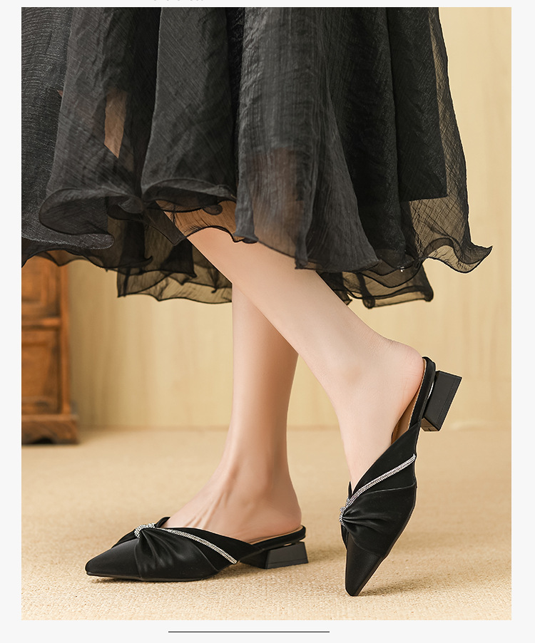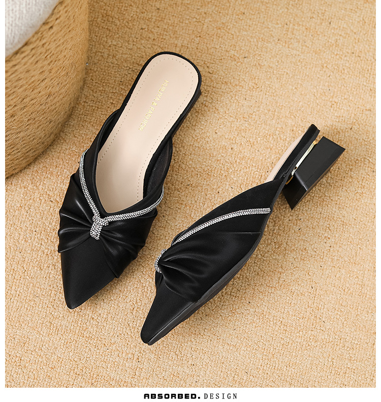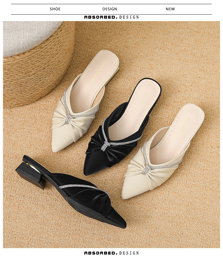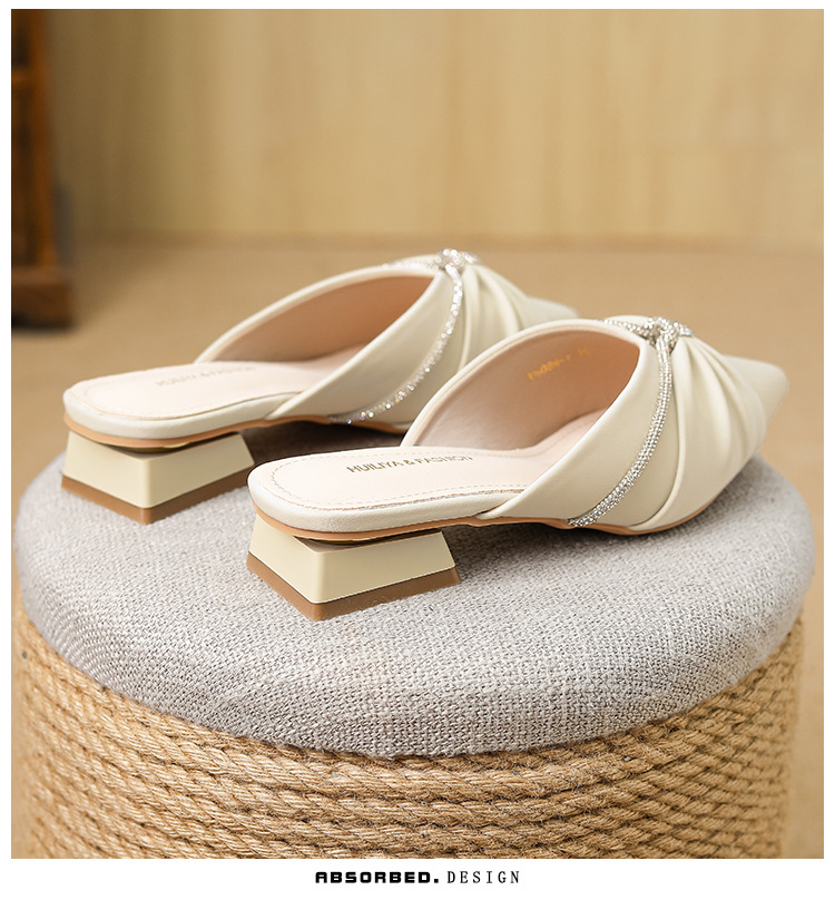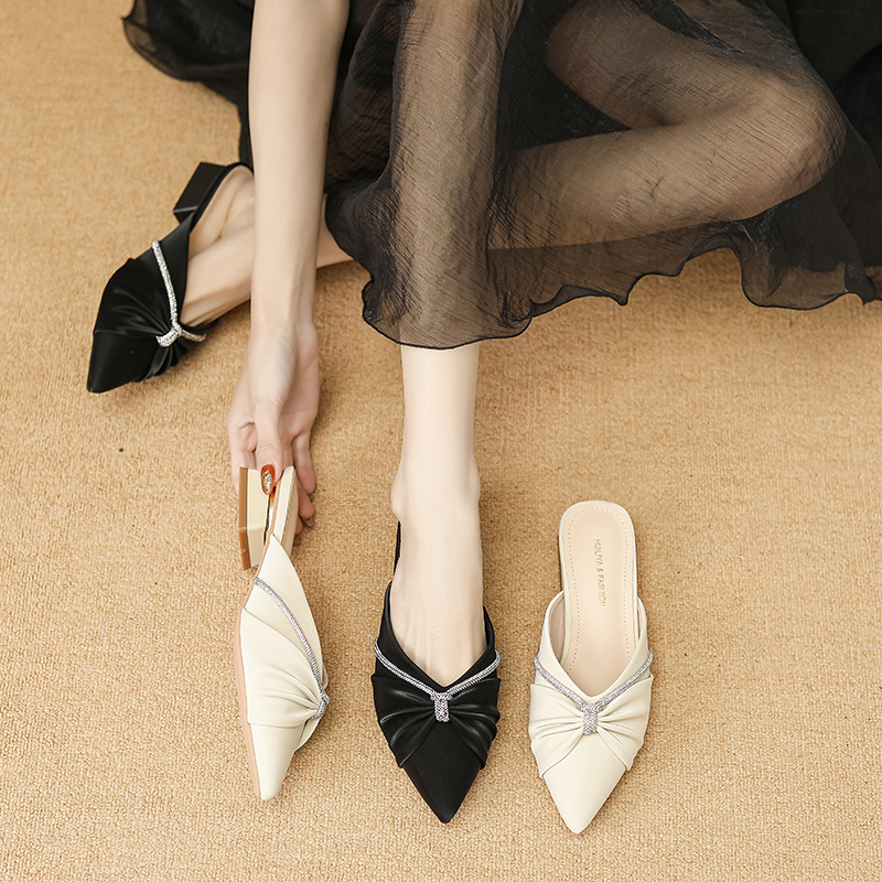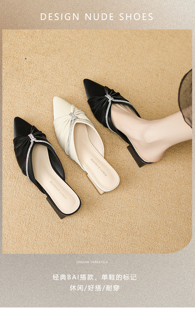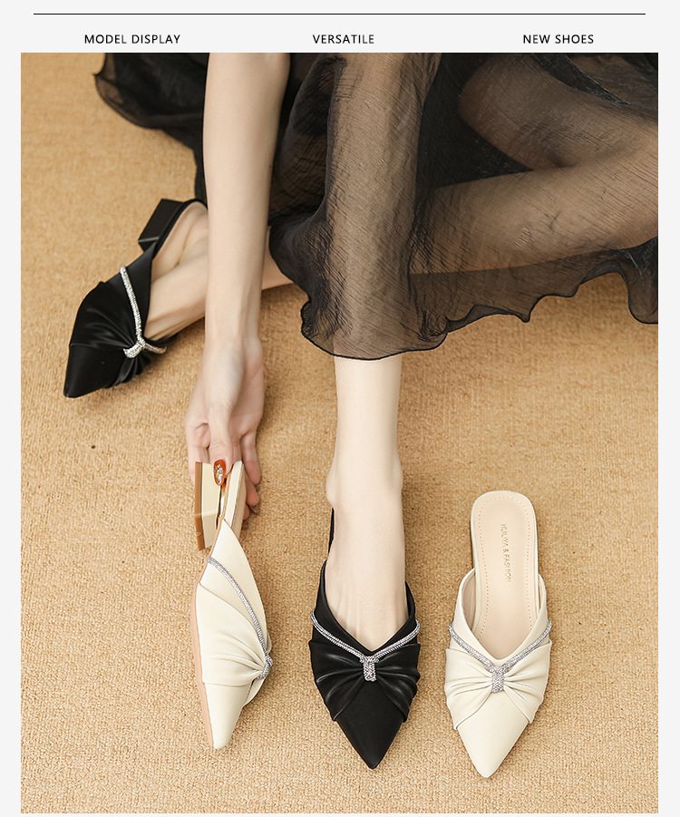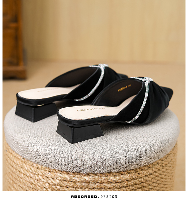 Huiliya Baotou 여성용 하프 슬리퍼 외부 착용 2025 새로운 뾰족한 우아한 프랑스 라인 스톤 뮬러 Y6088-1스토어 가기
