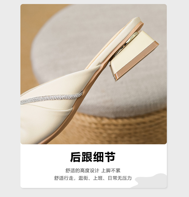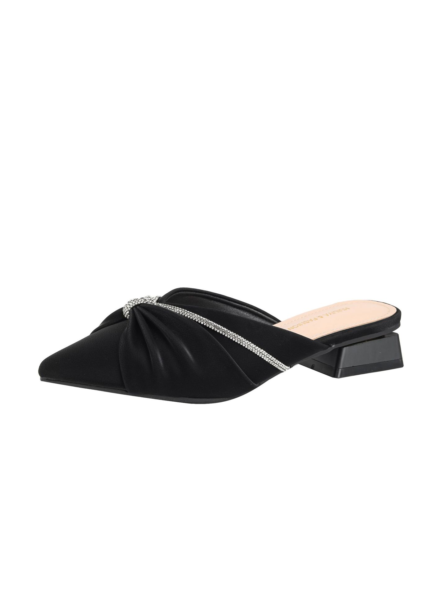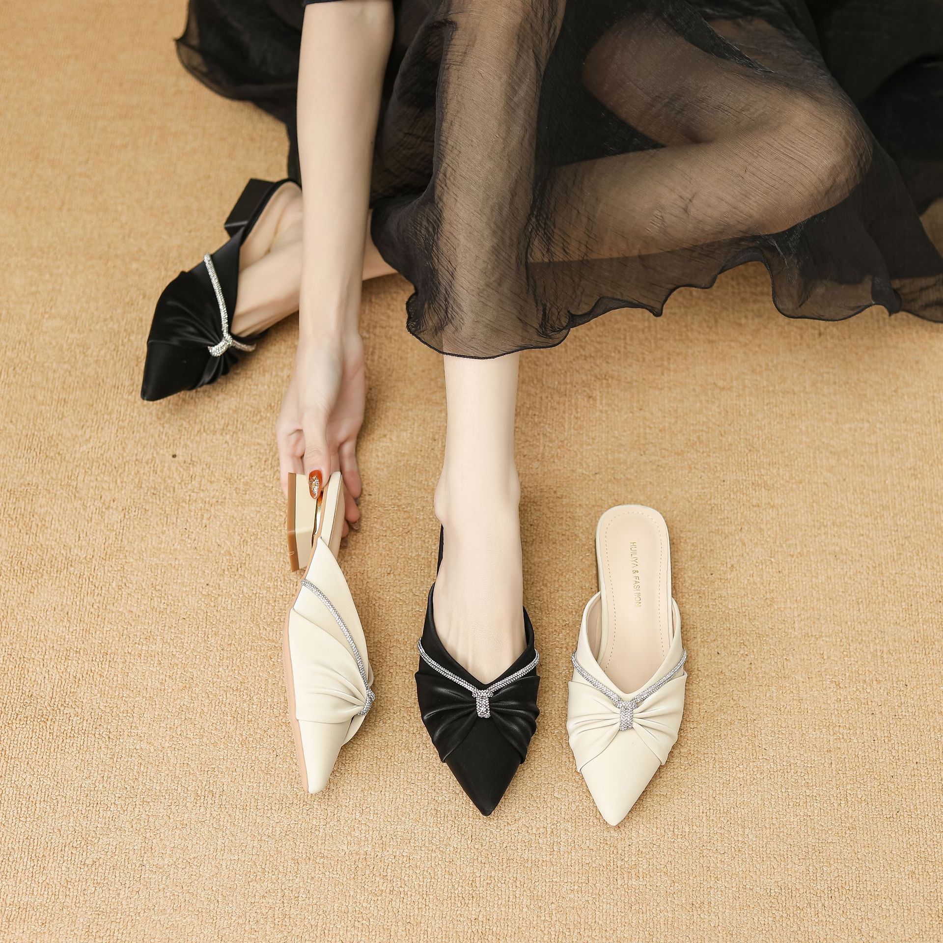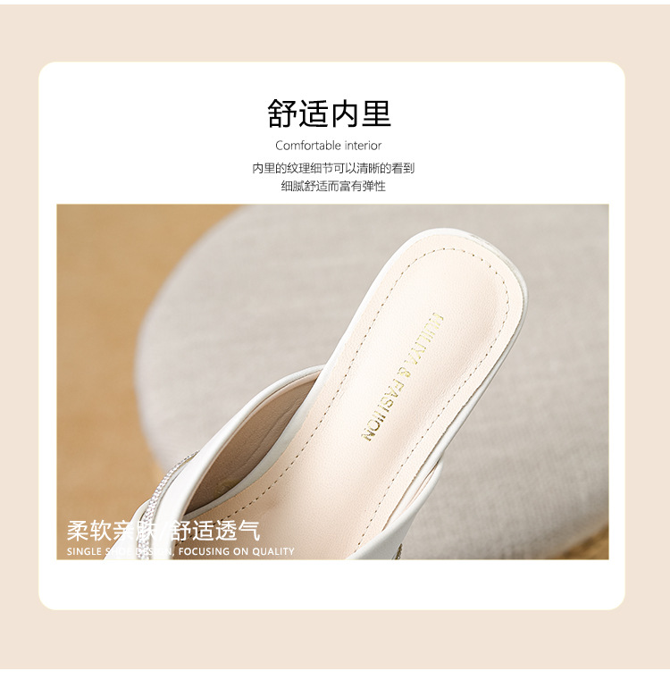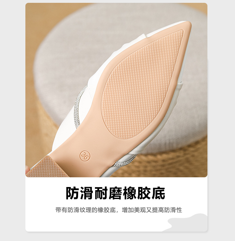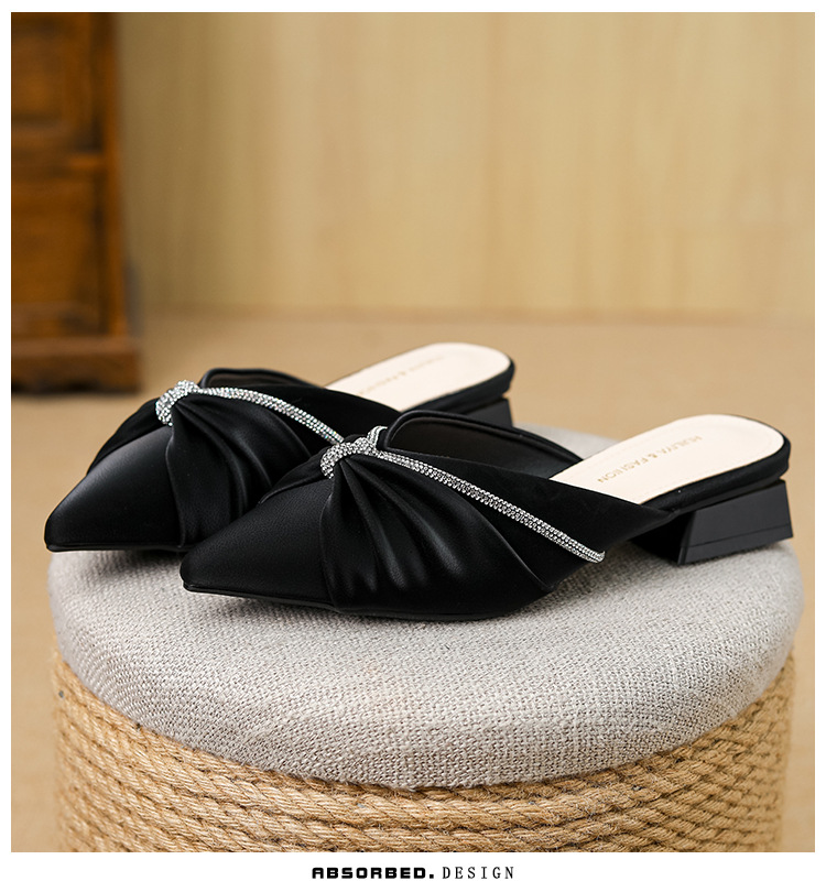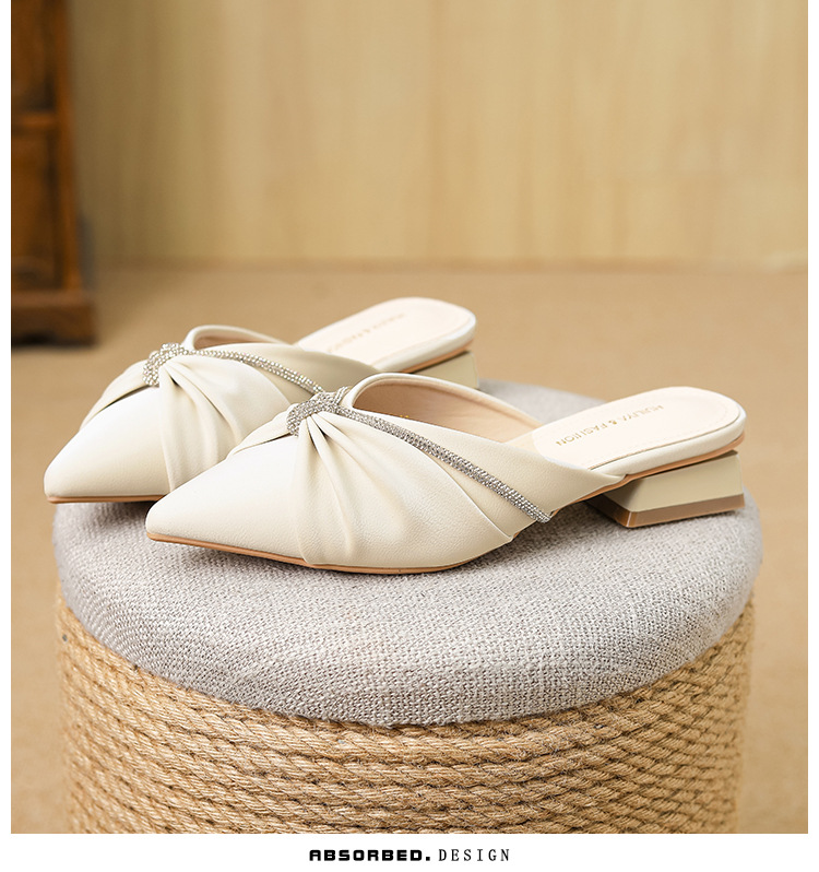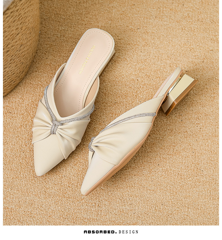 Huiliya Baotou 여성용 하프 슬리퍼 외부 착용 2025 새로운 뾰족한 우아한 프랑스 라인 스톤 뮬러 Y6088-1스토어 가기