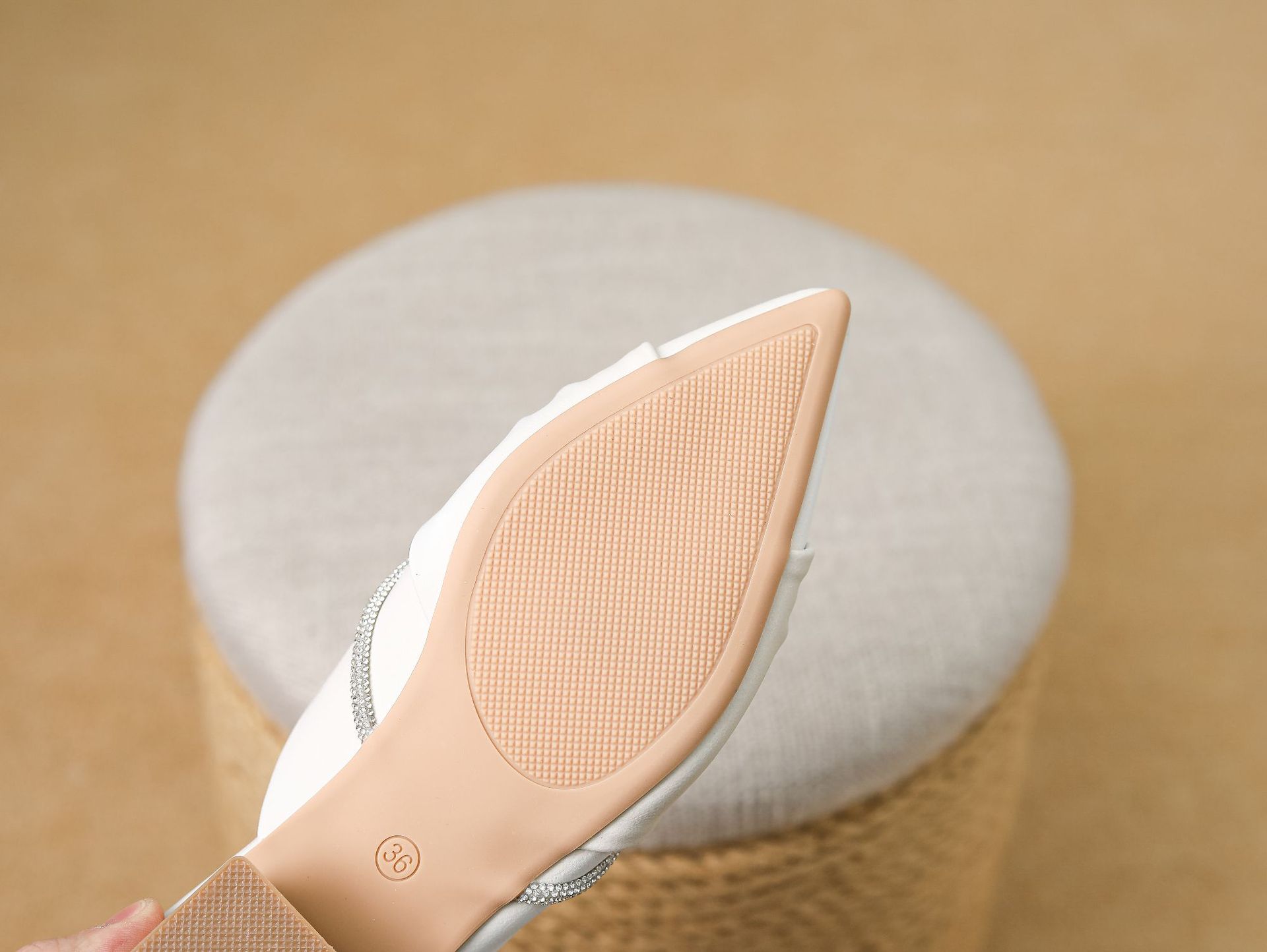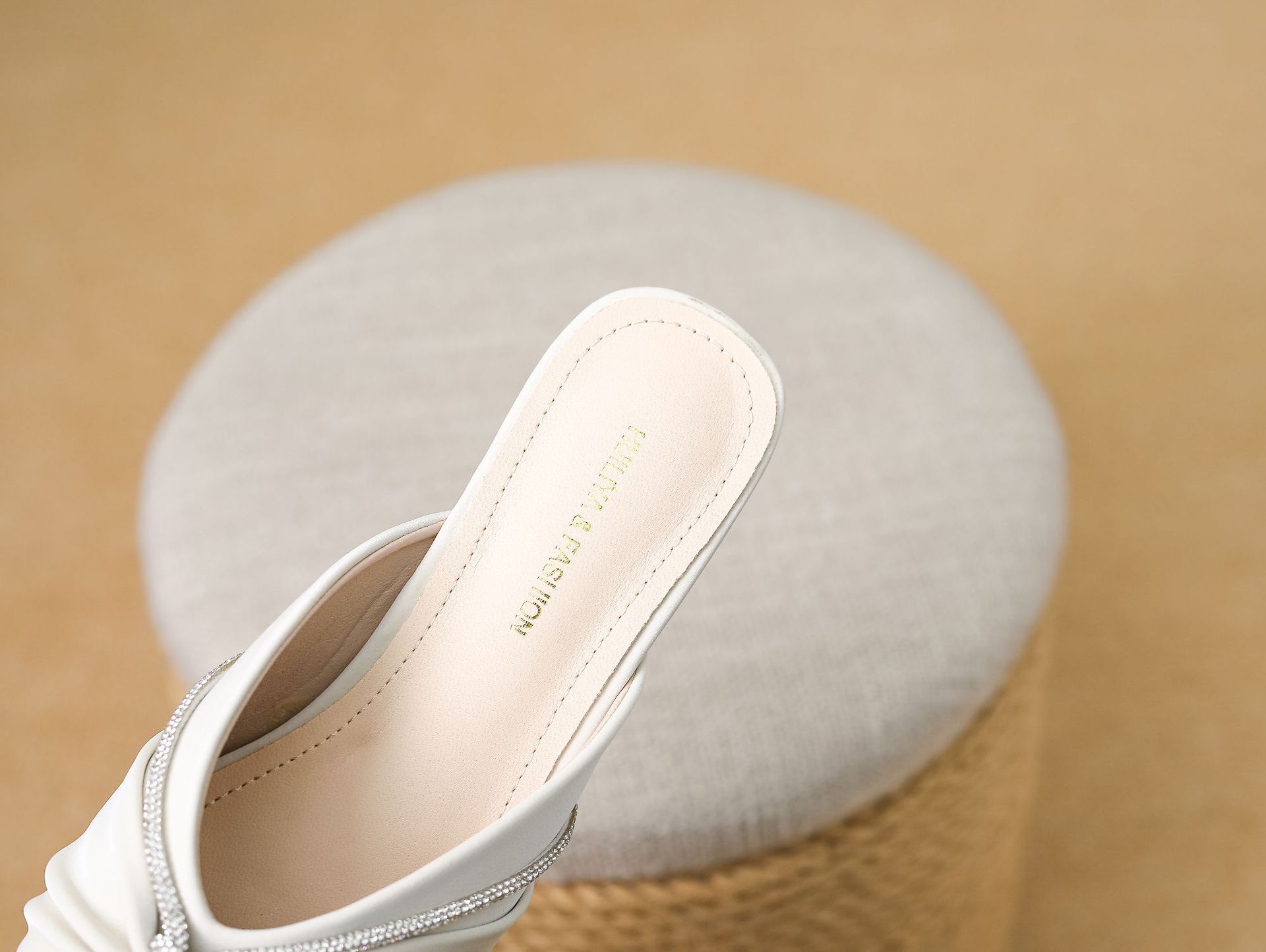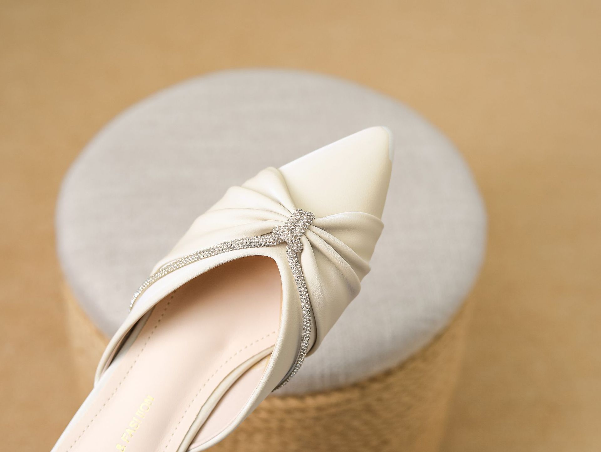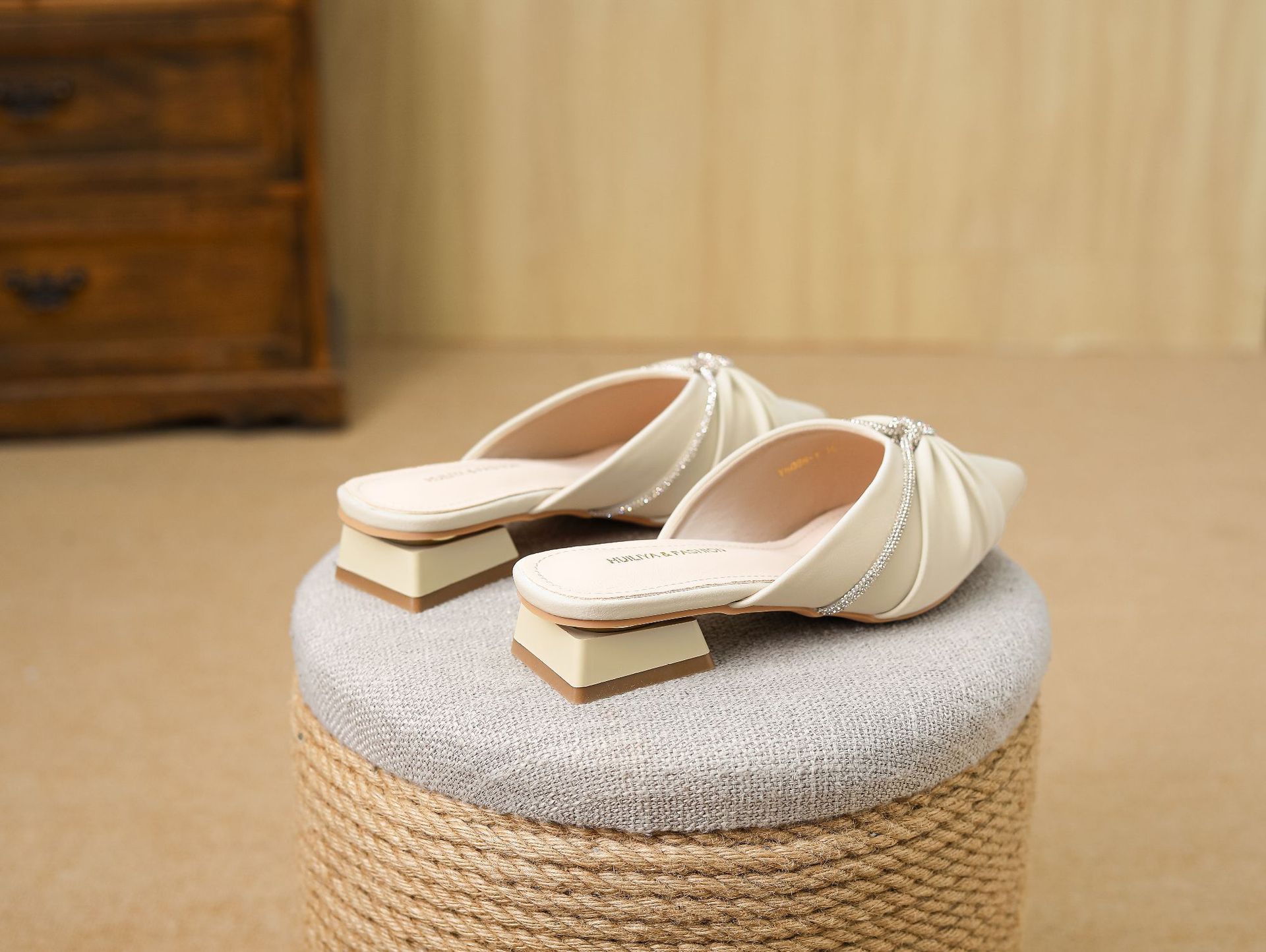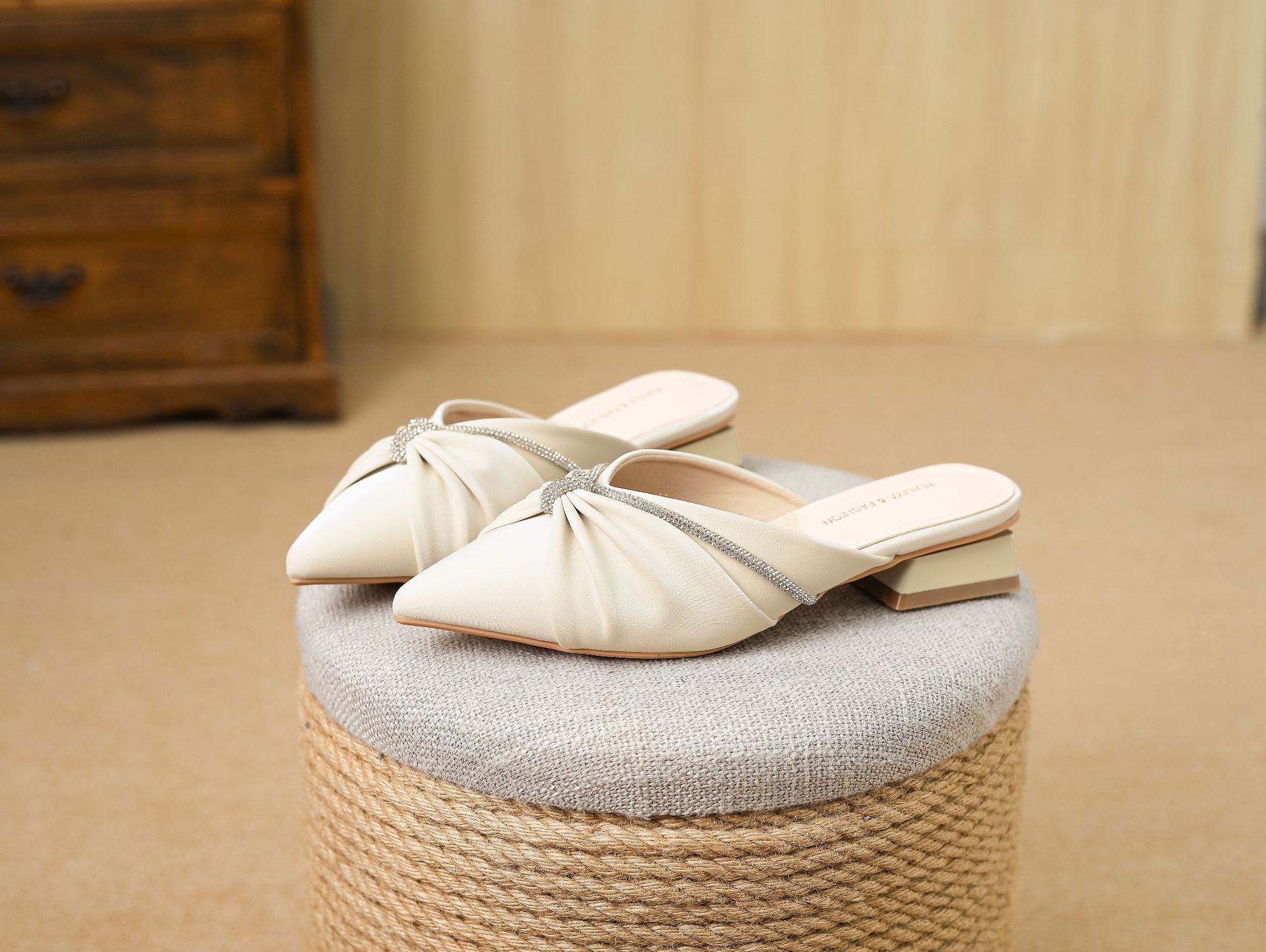 Huiliya Baotou 여성용 하프 슬리퍼 외부 착용 2025 새로운 뾰족한 우아한 프랑스 라인 스톤 뮬러 Y6088-1스토어 가기