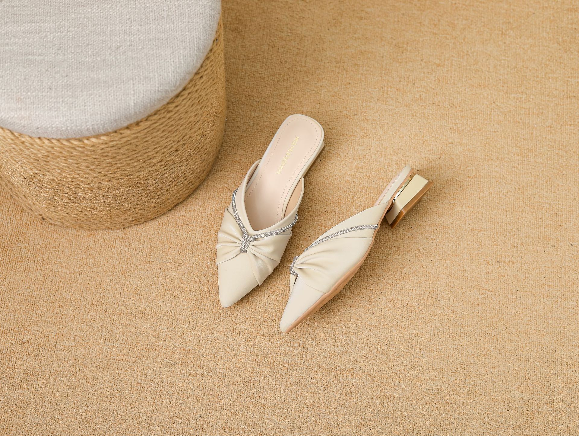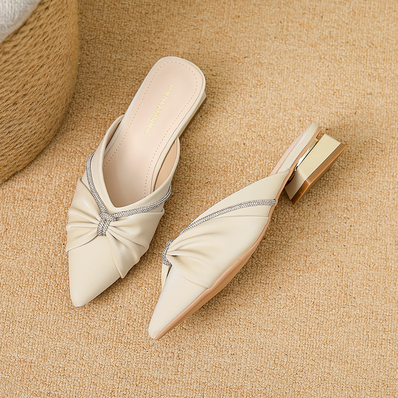Huiliya Baotou 여성용 하프 슬리퍼 외부 착용 2025 새로운 뾰족한 우아한 프랑스 라인 스톤 뮬러 Y6088-1
