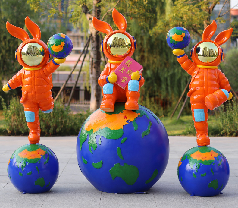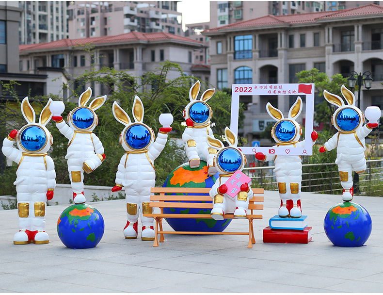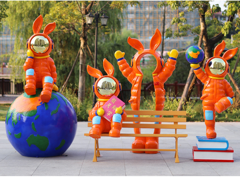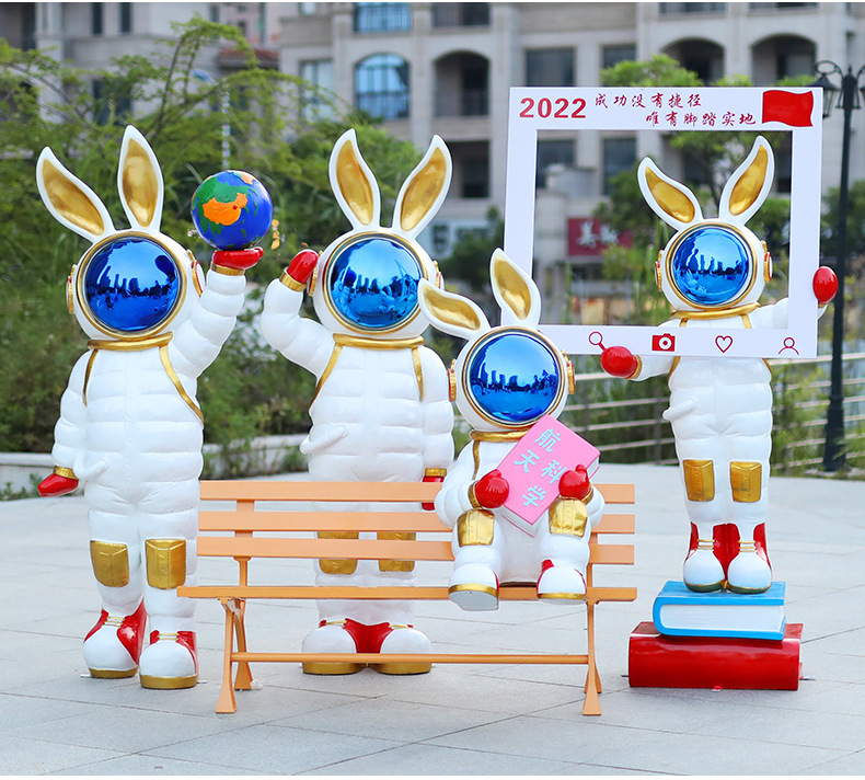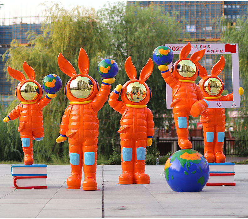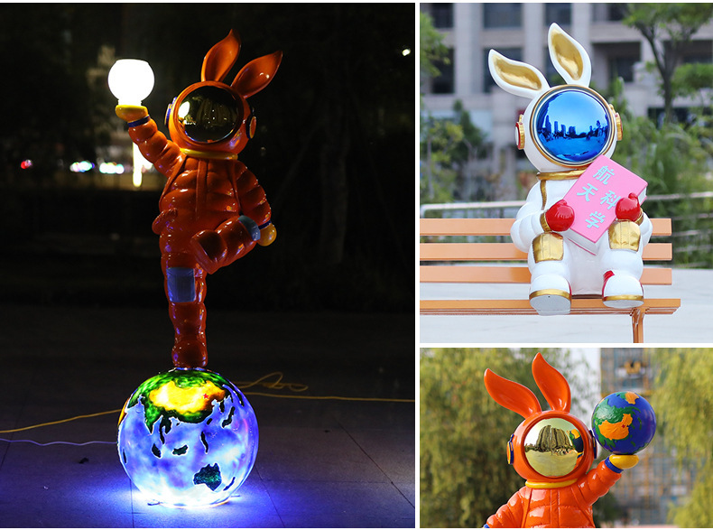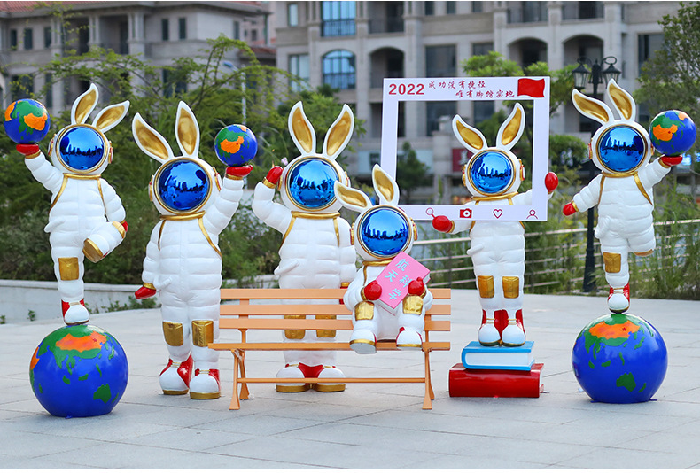 야외 풍경 그물 빨간 펀치 공간 토끼 장식품 만화 우주 비행사 로켓 조각 쇼핑몰 학교 아름다움 첸 장식스토어 가기