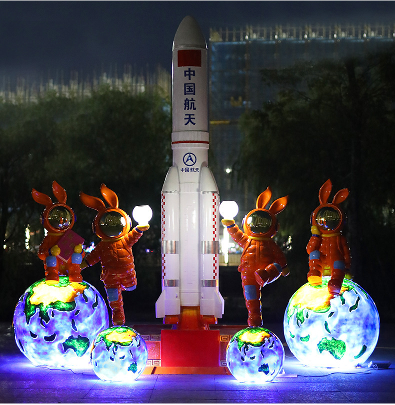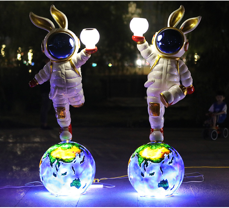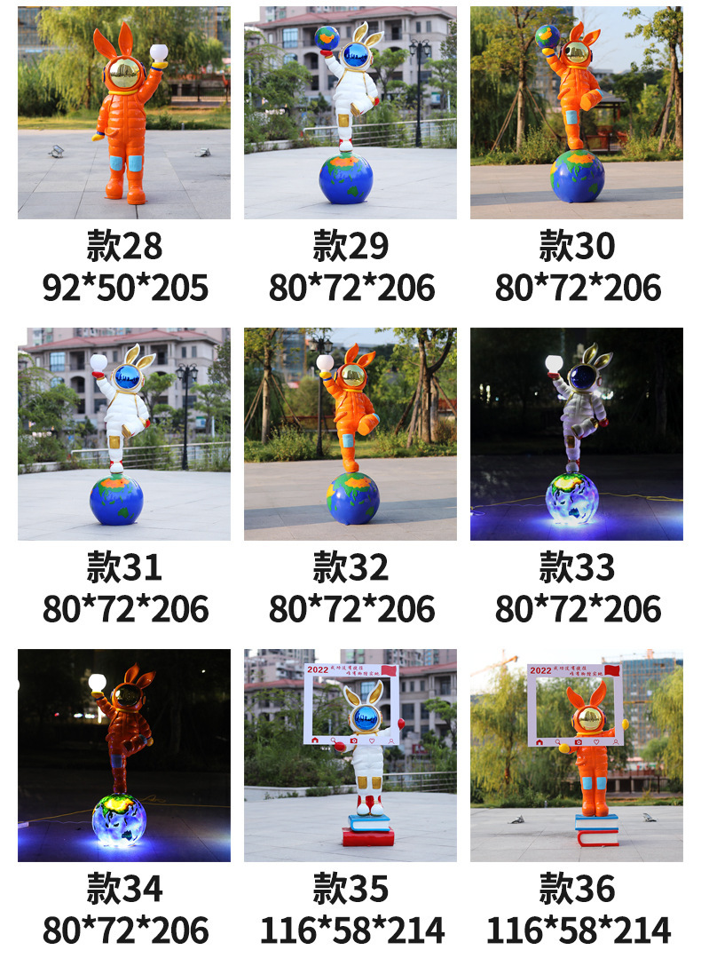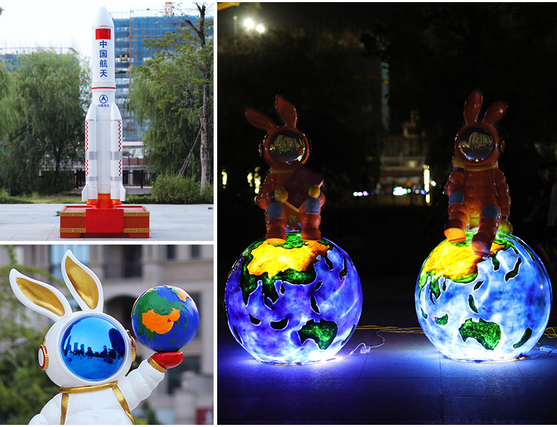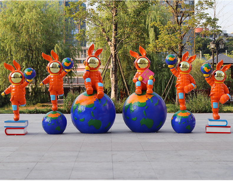 야외 풍경 그물 빨간 펀치 공간 토끼 장식품 만화 우주 비행사 로켓 조각 쇼핑몰 학교 아름다움 첸 장식스토어 가기