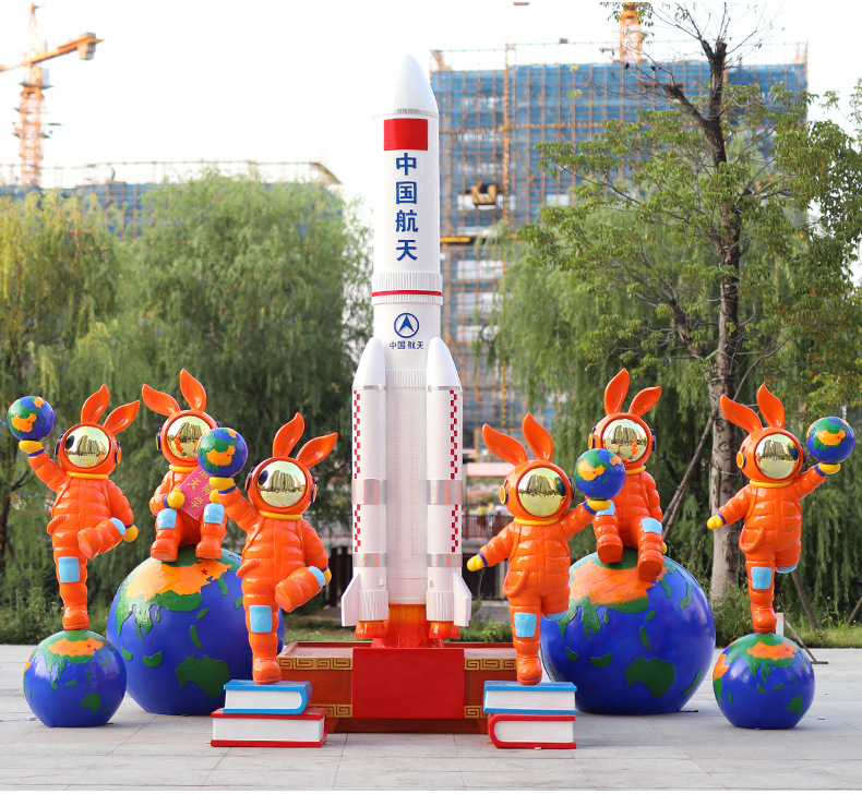 야외 풍경 그물 빨간 펀치 공간 토끼 장식품 만화 우주 비행사 로켓 조각 쇼핑몰 학교 아름다움 첸 장식