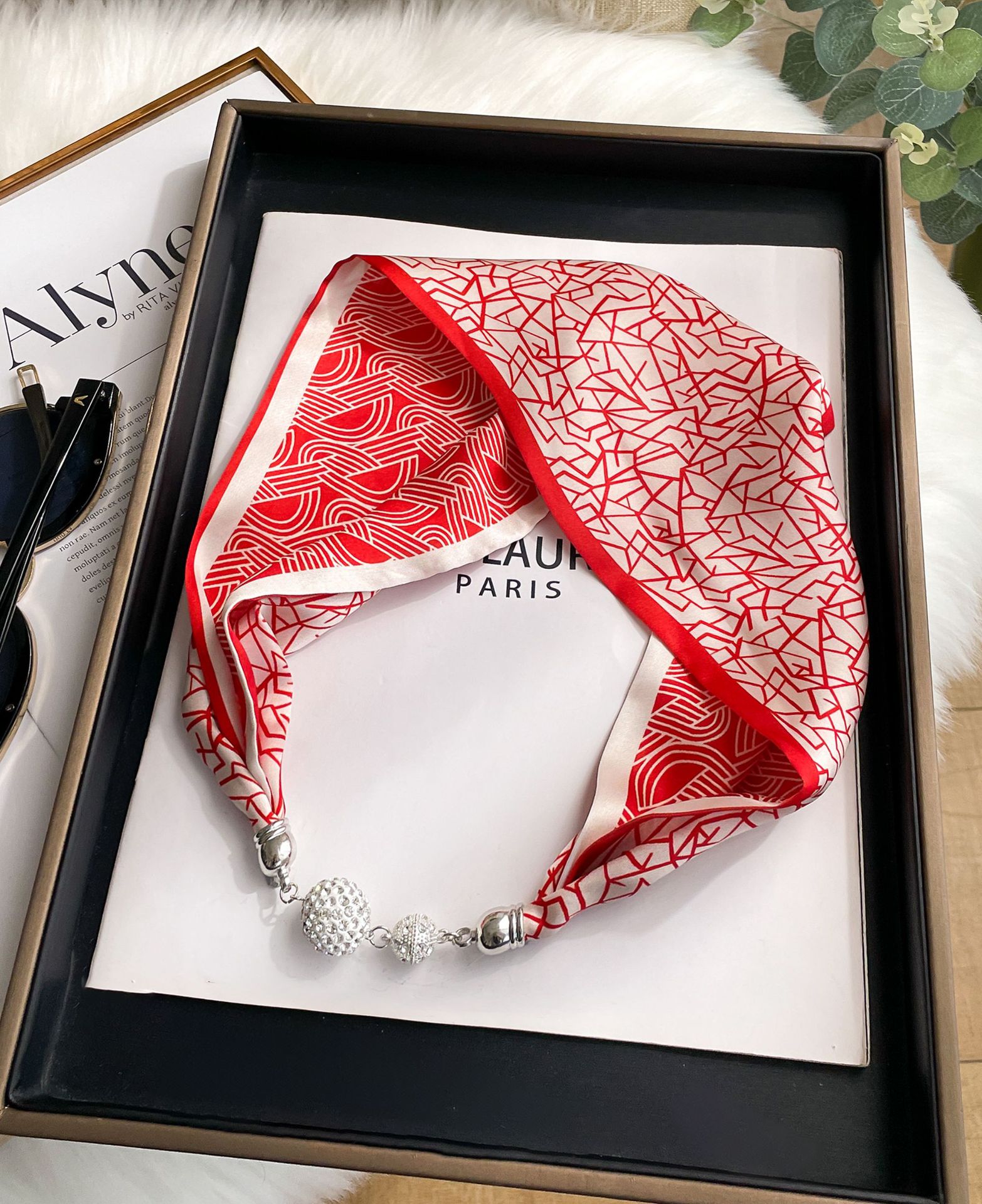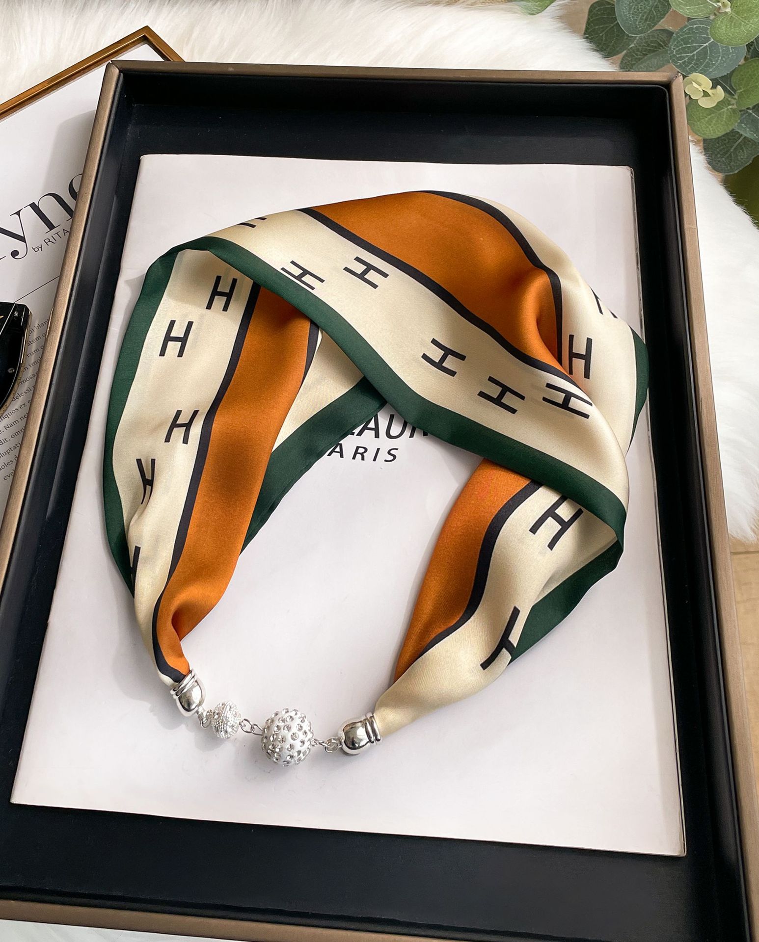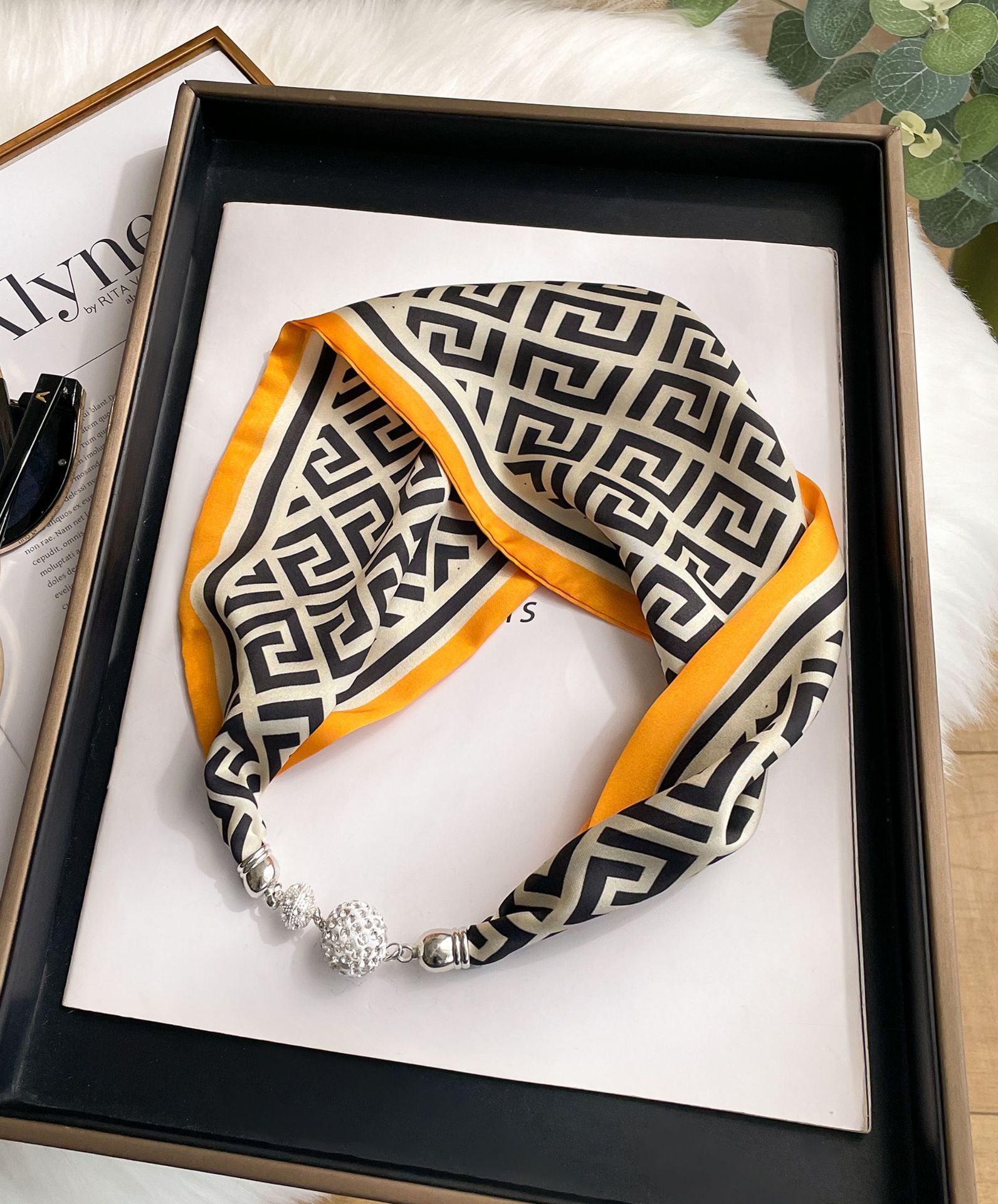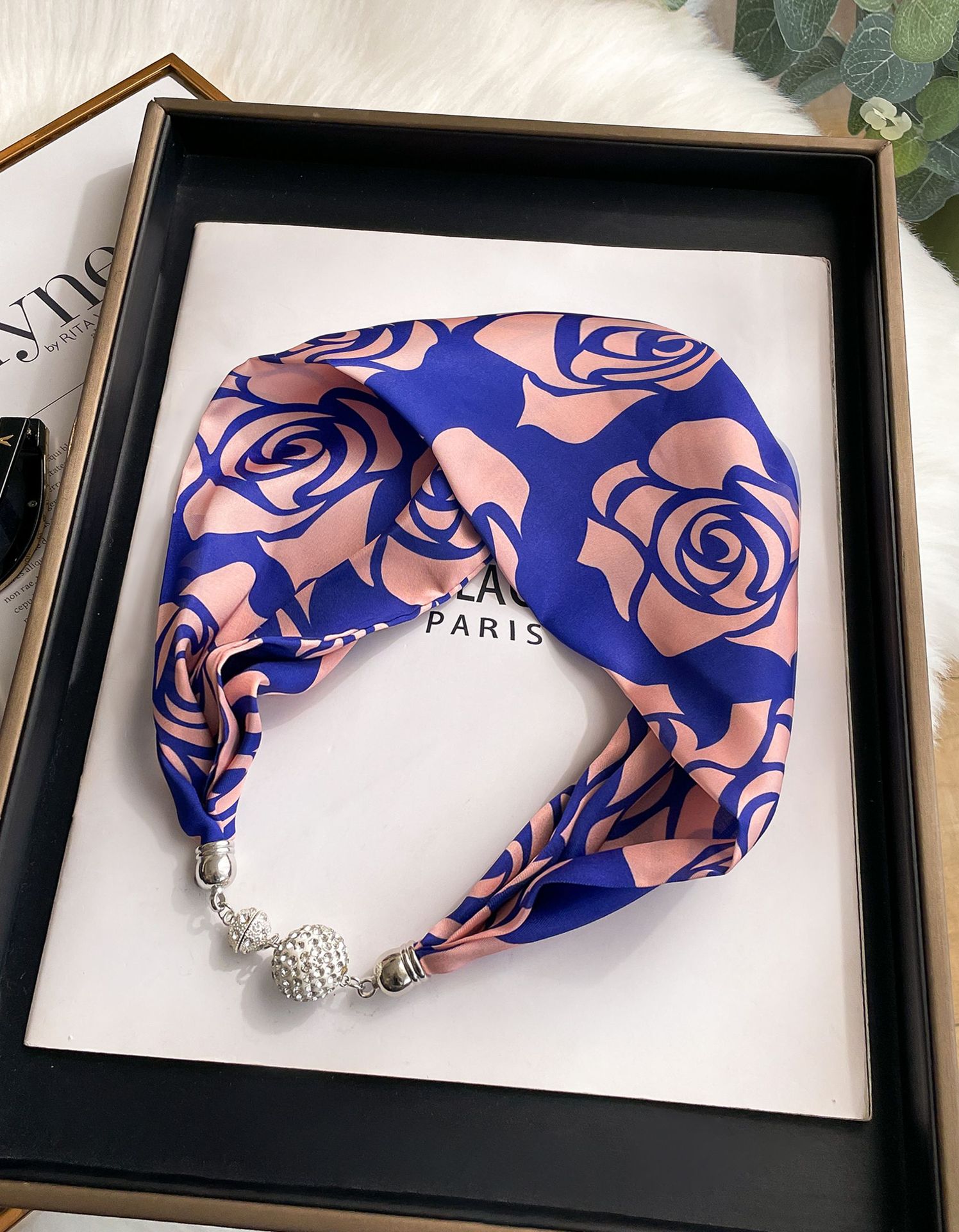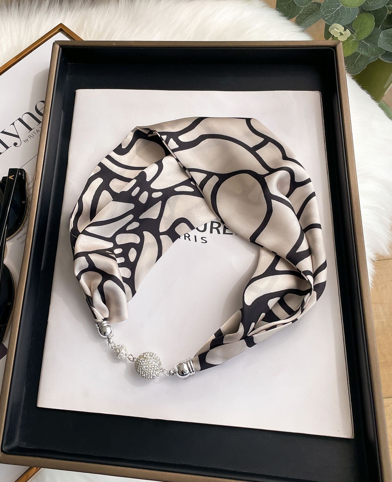 새로운 마그네틱 버튼 실크 스카프 헤어 밴드 유행 올 매치 인터넷-유명한 고급 다이아몬드 버튼 게으른 긴 여성의 가벼운 럭셔리 스타일 목 벨트