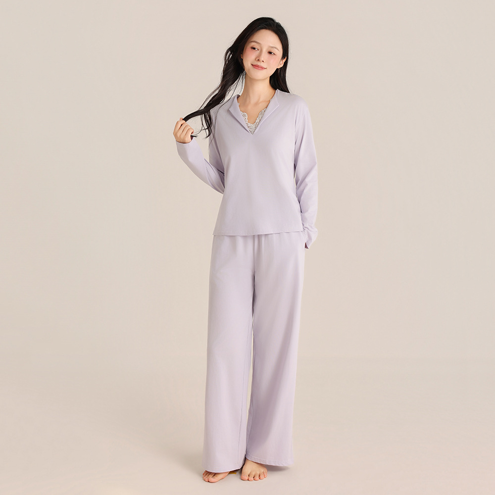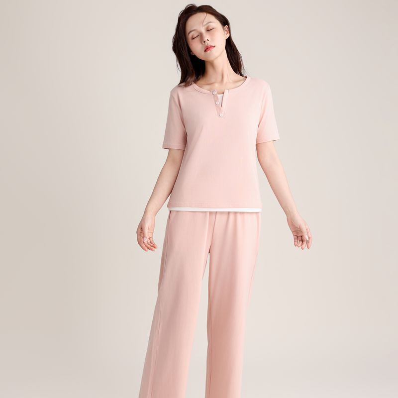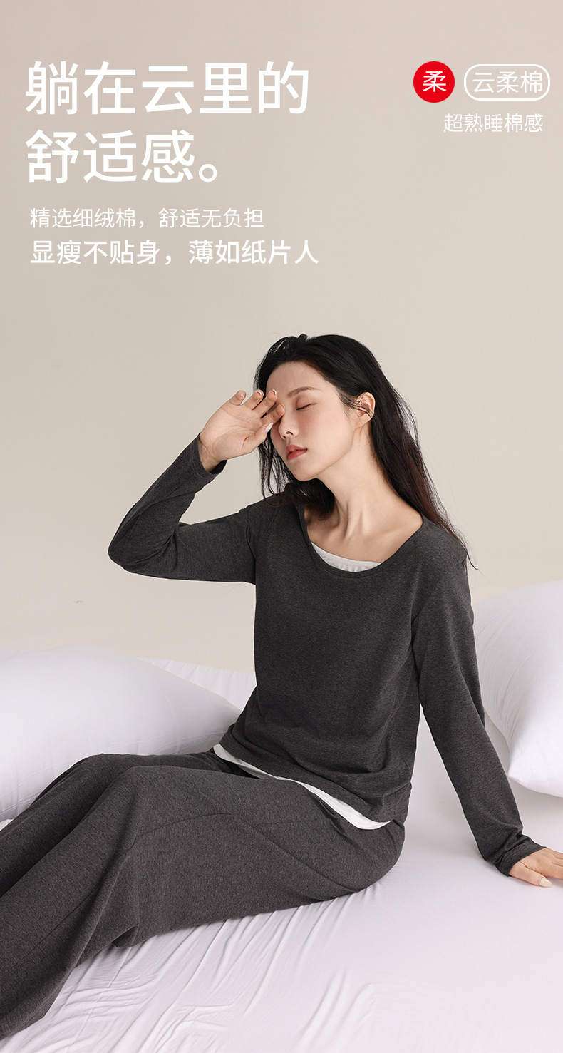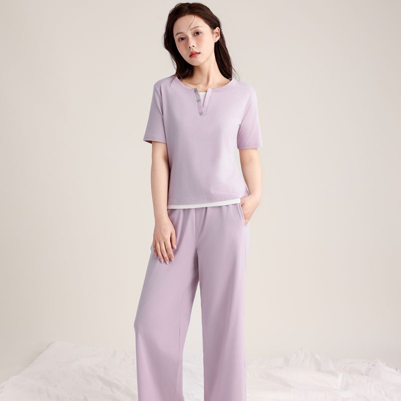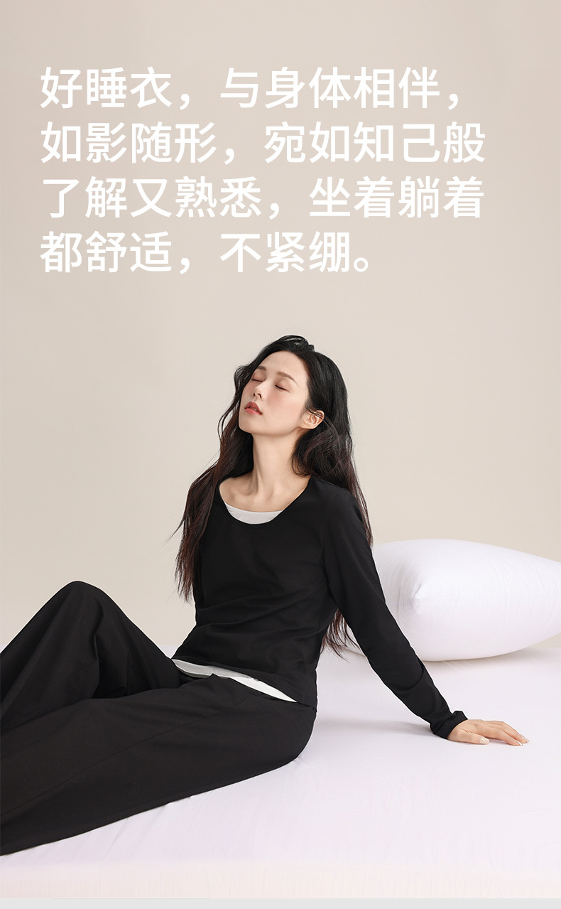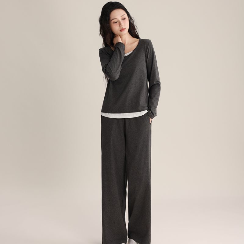 슈퍼 소프트 여성 풀오버 세트 봄과 가을 새로운 패션 파자마 가짜 투피스 스티칭 디자인은 가정용 옷 밖에서 입을 수 있습니다.