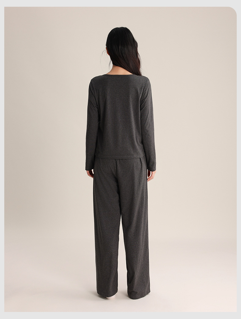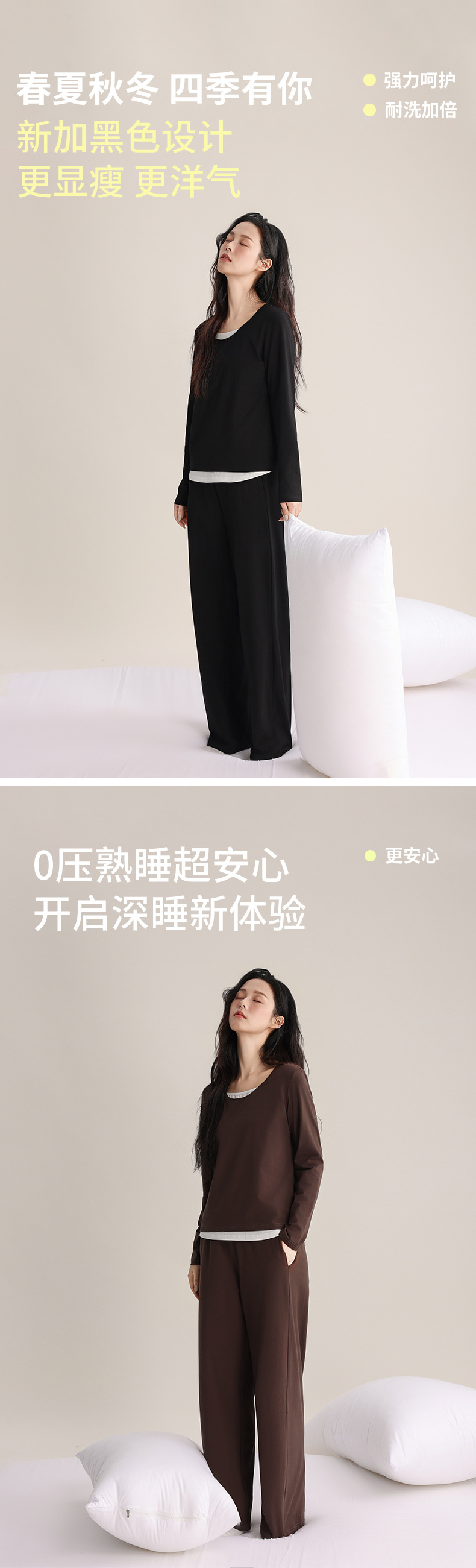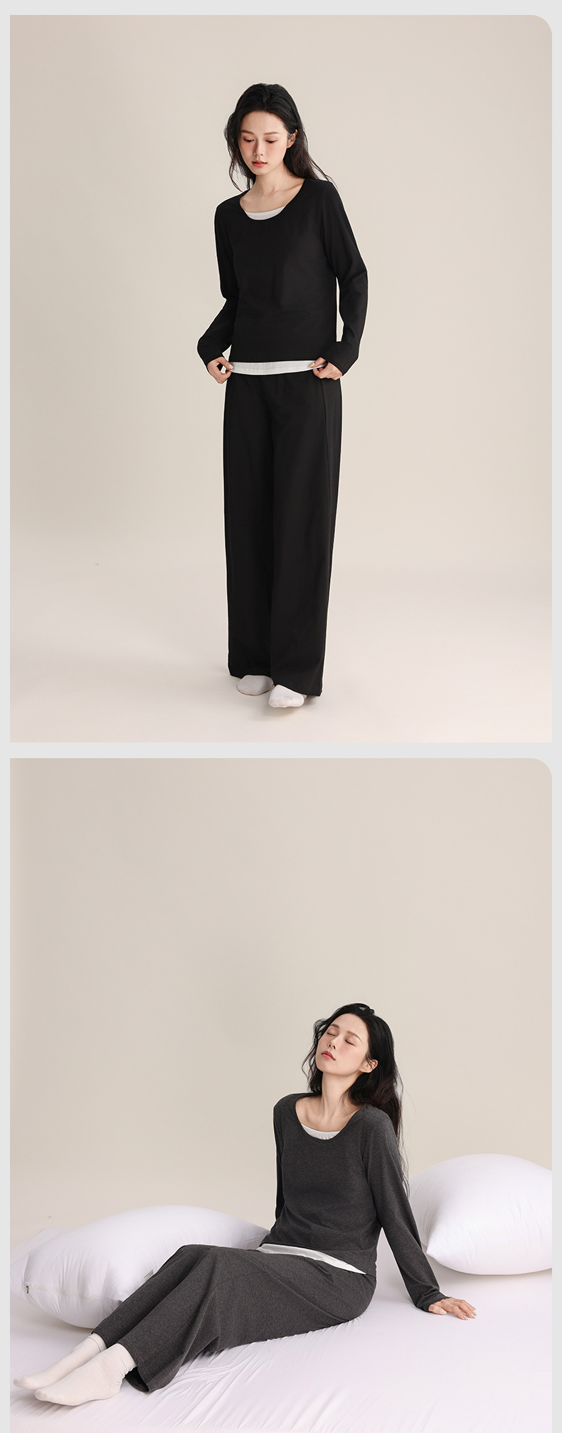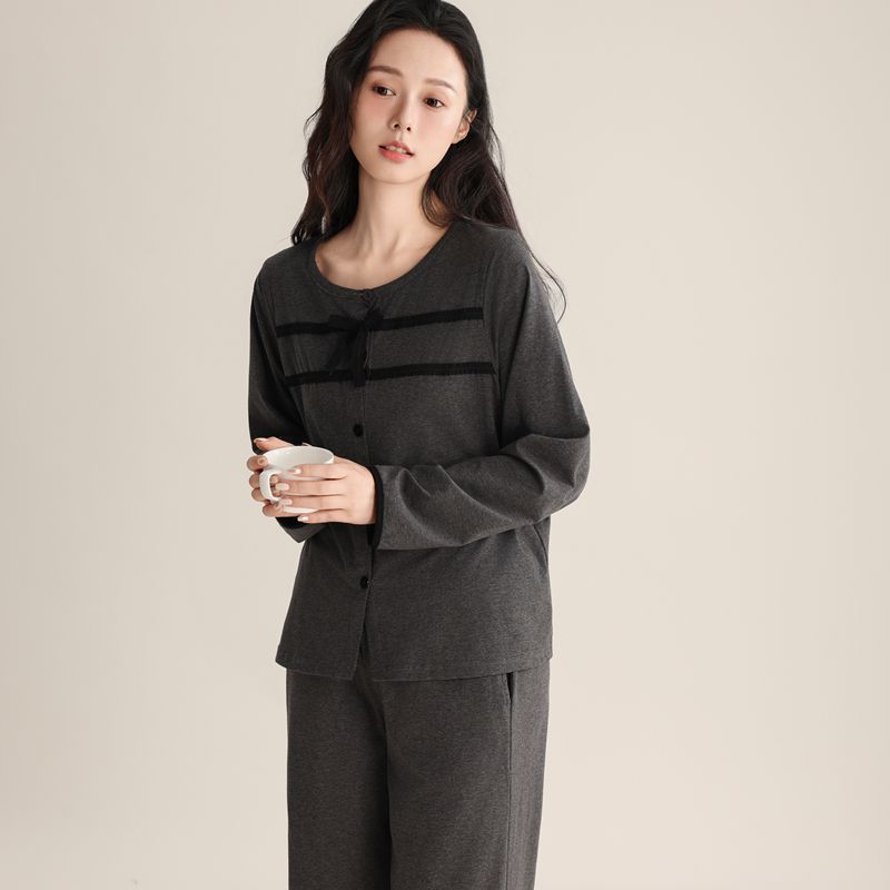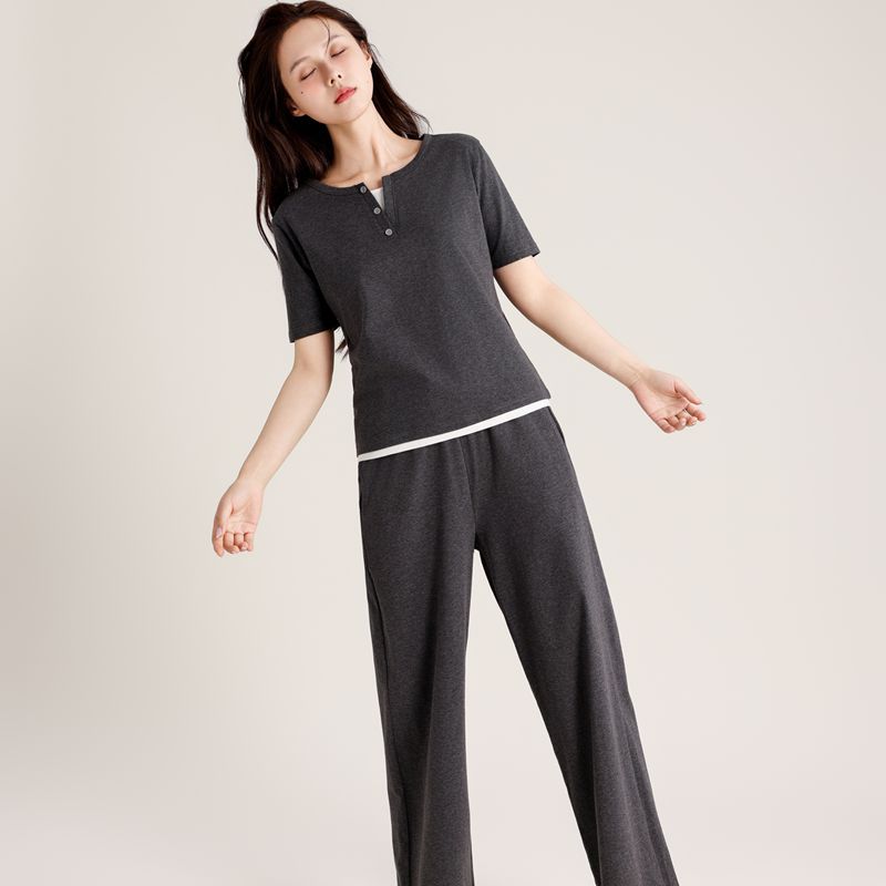 슈퍼 소프트 여성 풀오버 세트 봄과 가을 새로운 패션 파자마 가짜 투피스 스티칭 디자인은 가정용 옷 밖에서 입을 수 있습니다.