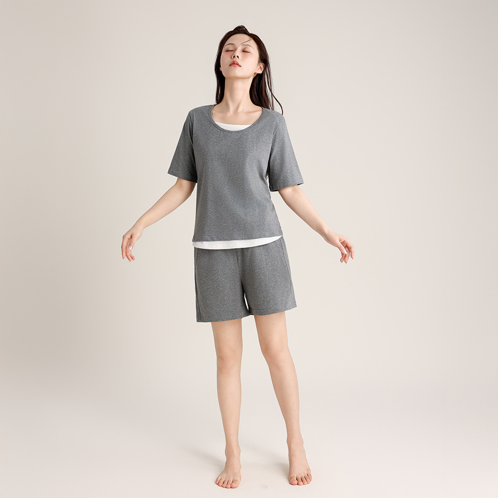 슈퍼 소프트 여성 풀오버 세트 봄과 가을 새로운 패션 파자마 가짜 투피스 스티칭 디자인은 가정용 옷 밖에서 입을 수 있습니다.스토어 가기