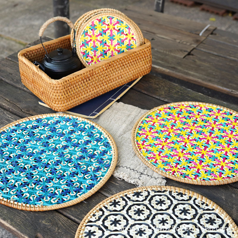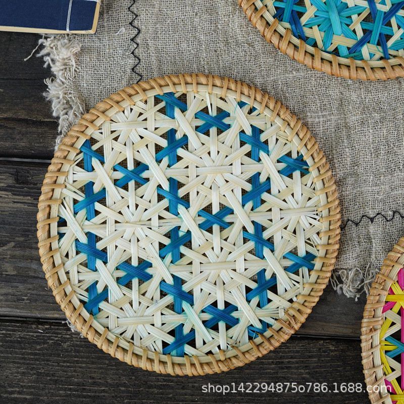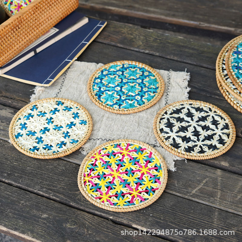 A5L 베트남 가을 등나무 코스터 대나무 플레이트 매트 열 절연 매트 매트 매트 퍼플 클레이 티 포트 매트 세트 벽 마운트스토어 가기