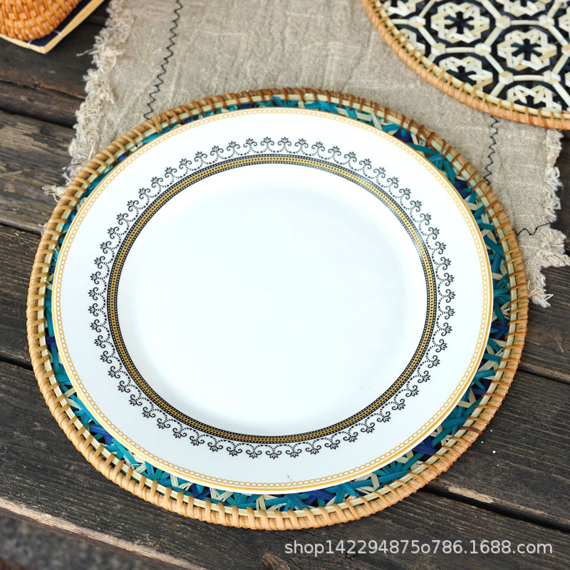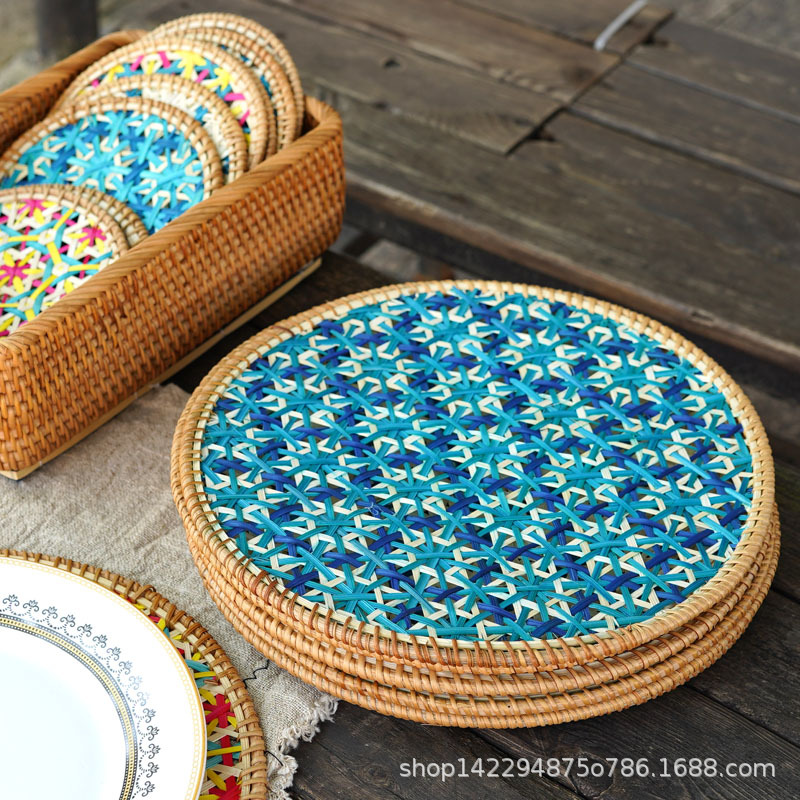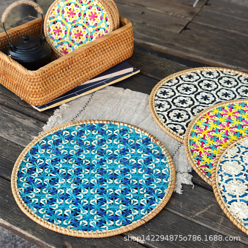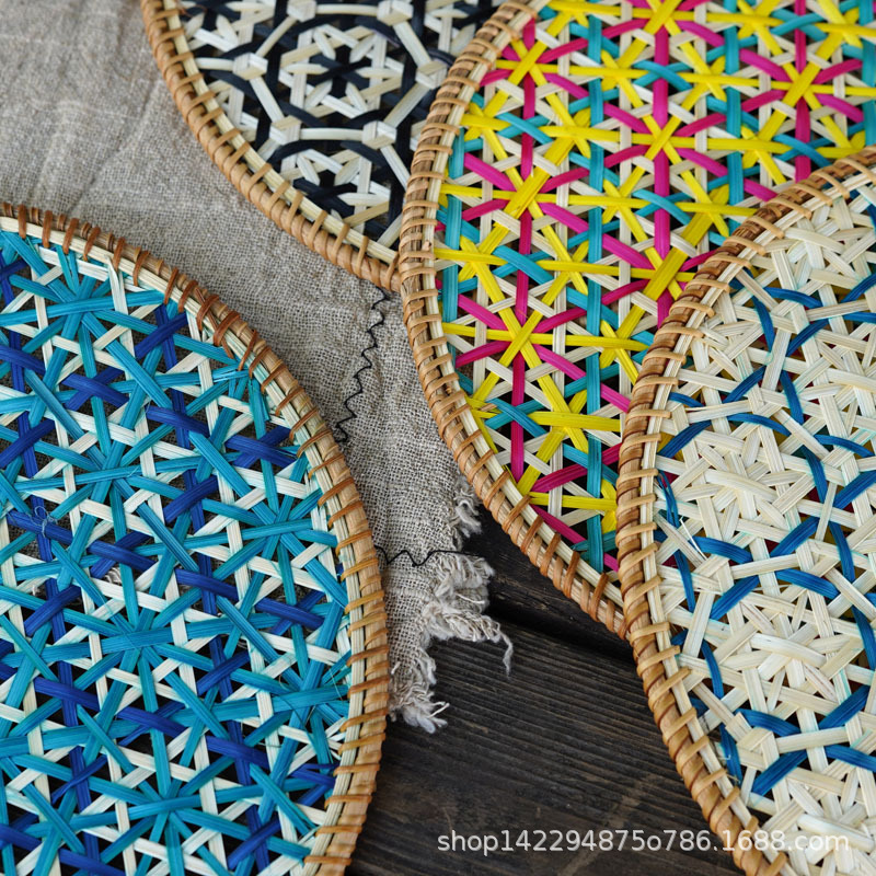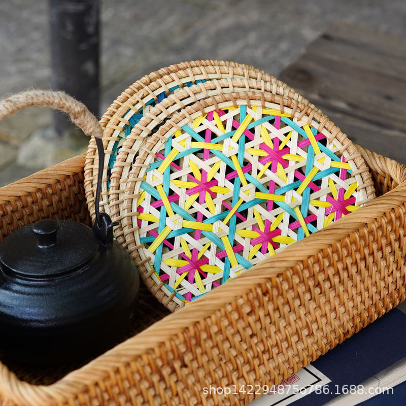 A5L 베트남 가을 등나무 코스터 대나무 플레이트 매트 열 절연 매트 매트 매트 퍼플 클레이 티 포트 매트 세트 벽 마운트