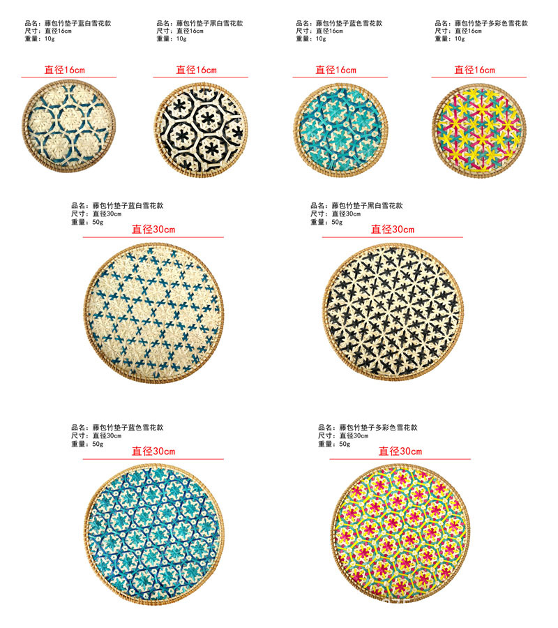 • εαβγδζ 등나무로 감싼 대나무 매트 다색 눈송이 16cm 단품 εαβγδζ