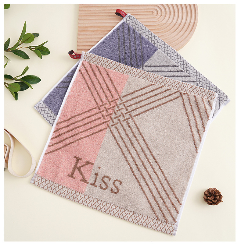 순면 사각 수건 도매, 세로 줄무늬 체크무늬, 두꺼운 흡수성 가정용 대형 사각 수건, 어린이 얼굴 닦는 수건, 선물용 사각 수건