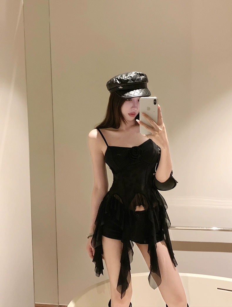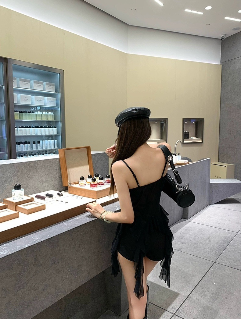 L279 민소매 조끼 여성 벨트 가슴 패드 새로운 우아한 달콤한 자카드 슬링 스트랩 틈새 독특한 세련된 탑스토어 가기