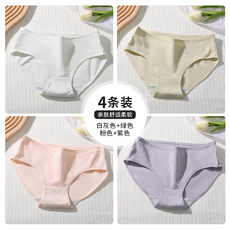 Jian Dan Bird 속옷 여성의 순수한면 항균 Crotch 단색 간단한 중간 허리 달콤한 소녀 통기성 새로운 스타일 삼각형 반바지스토어 가기