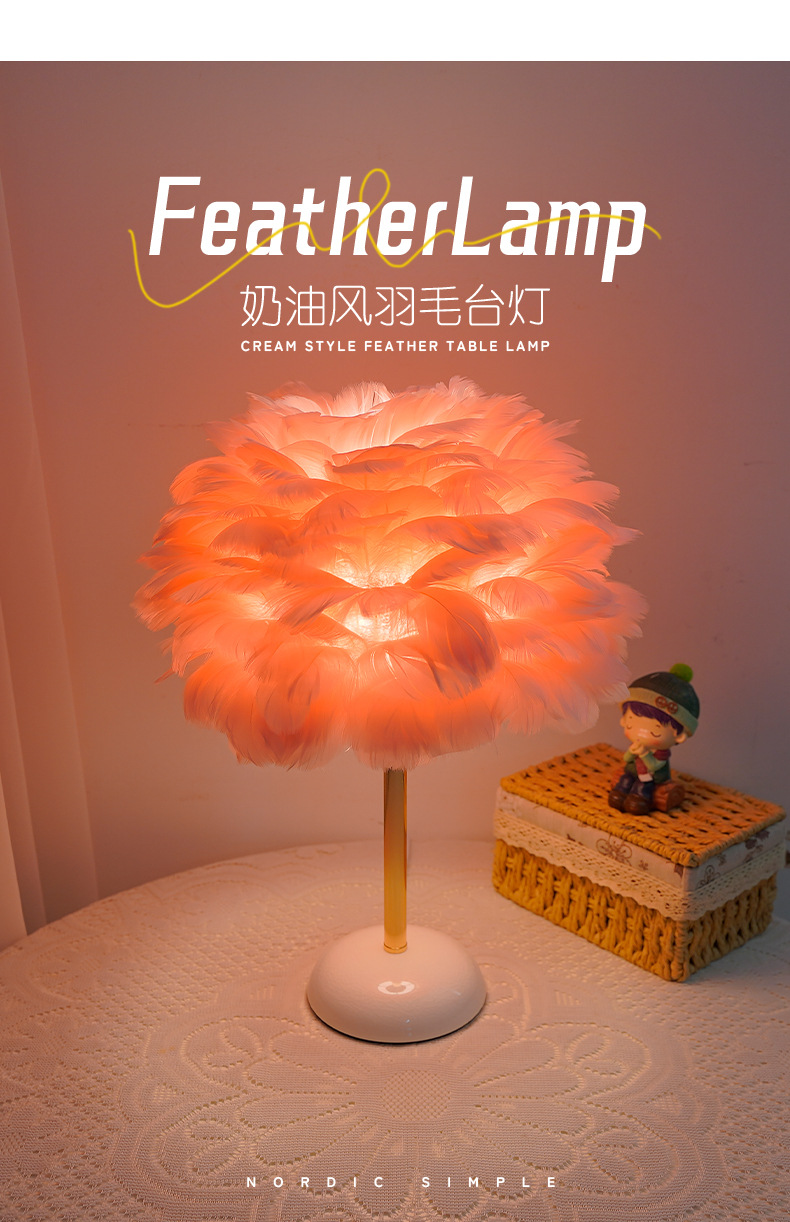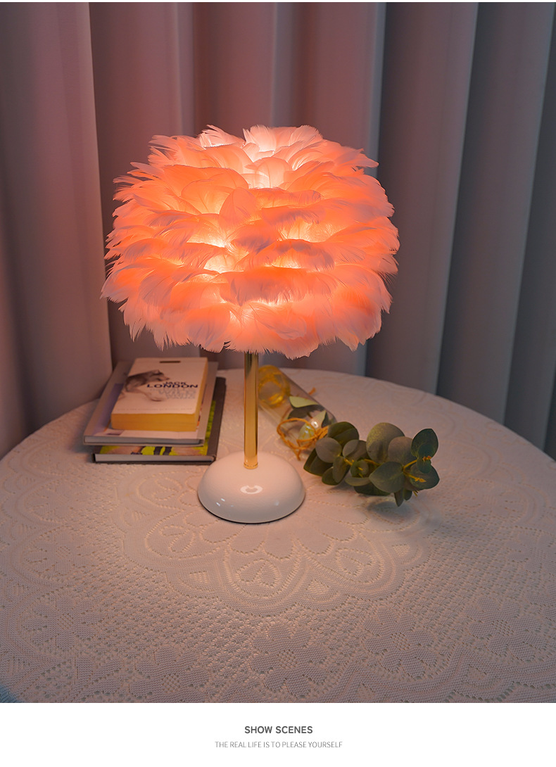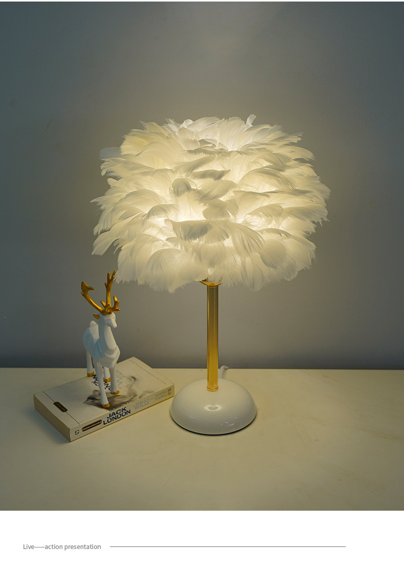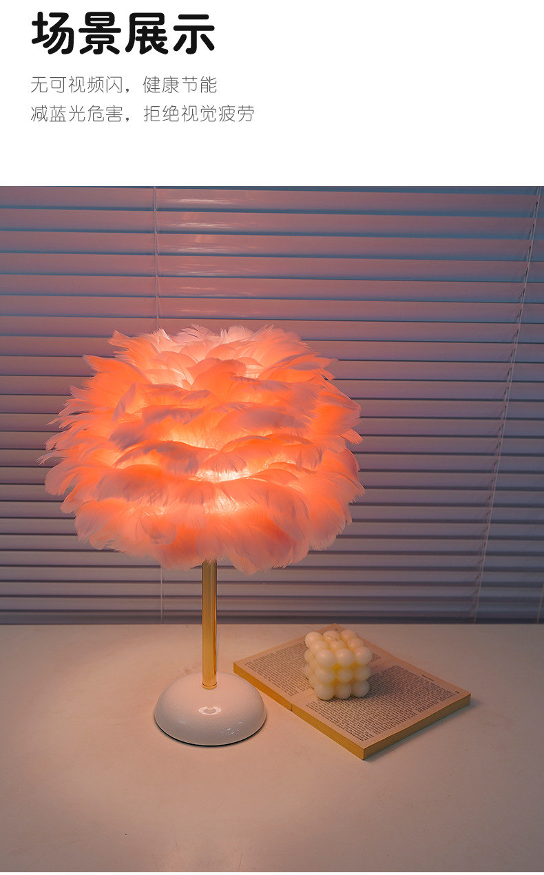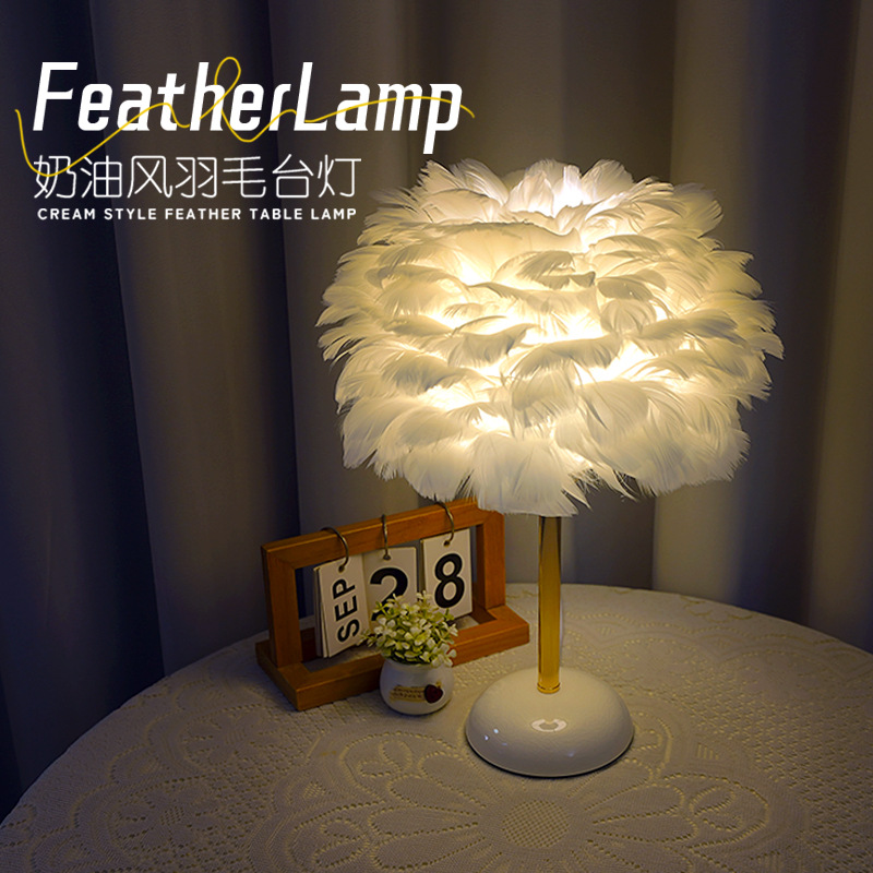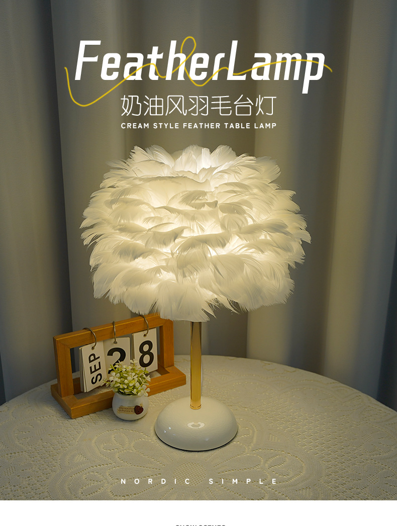 가벼운 고급 깃털 테이블 램프 고급 침실 침실 램프 북유럽 따뜻한 Ins 사이버 연예인 밤 빛 잠자는 깃털 램프