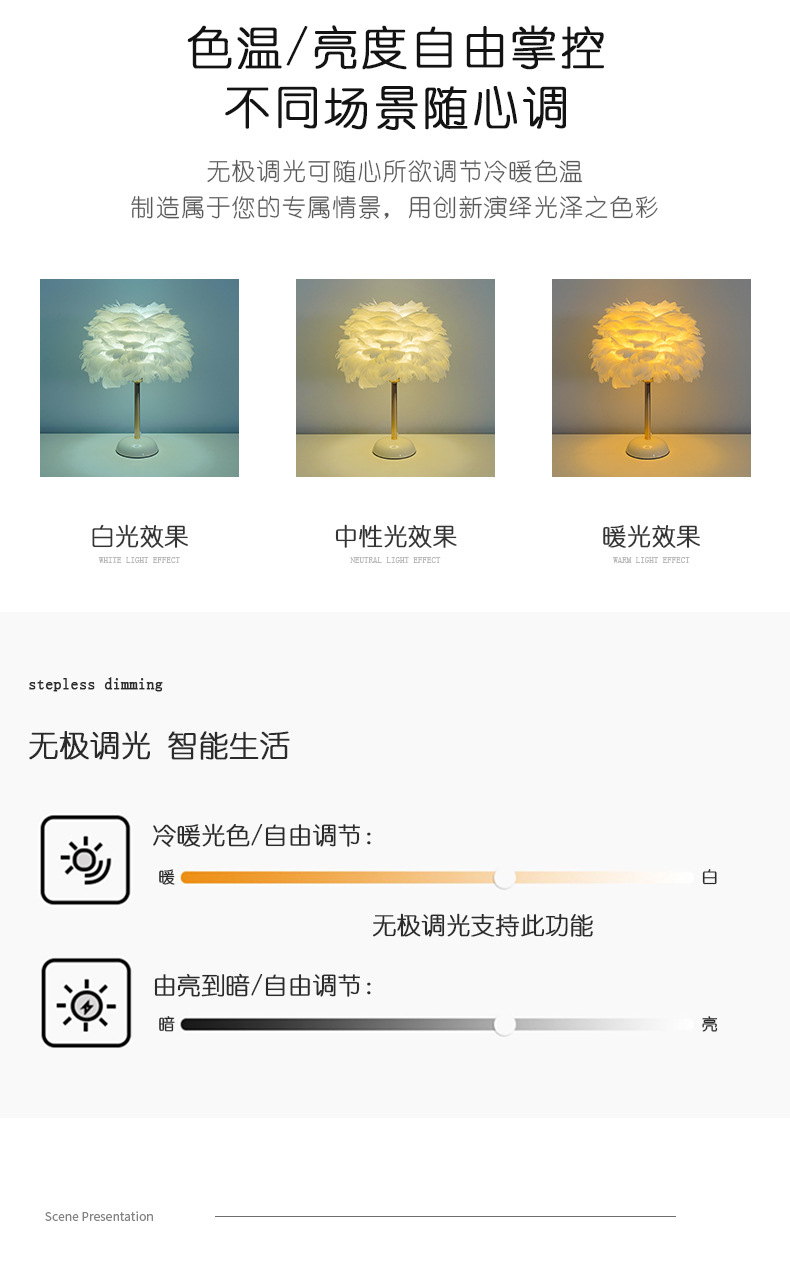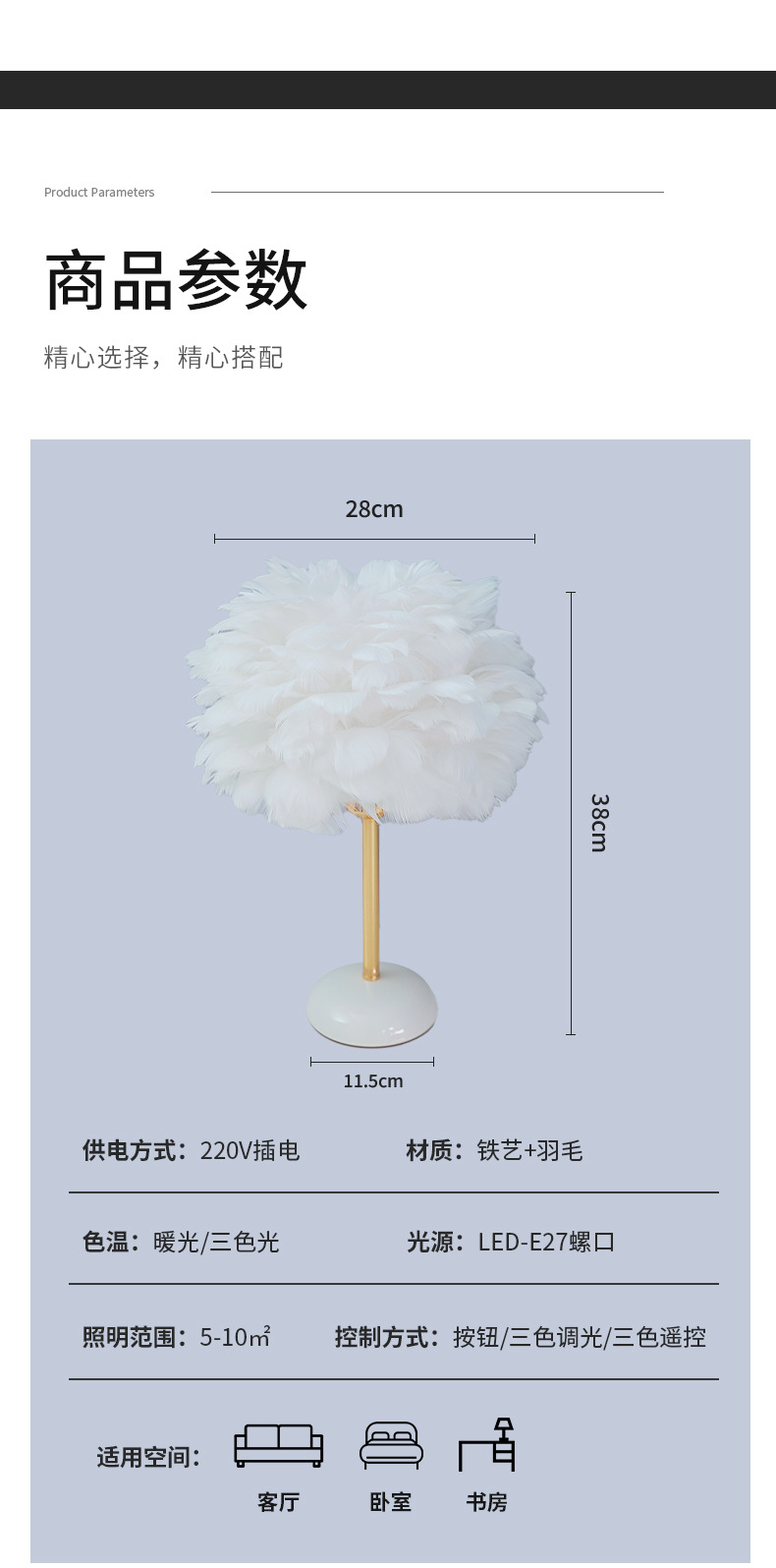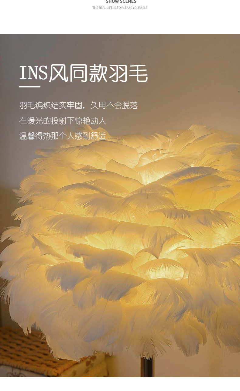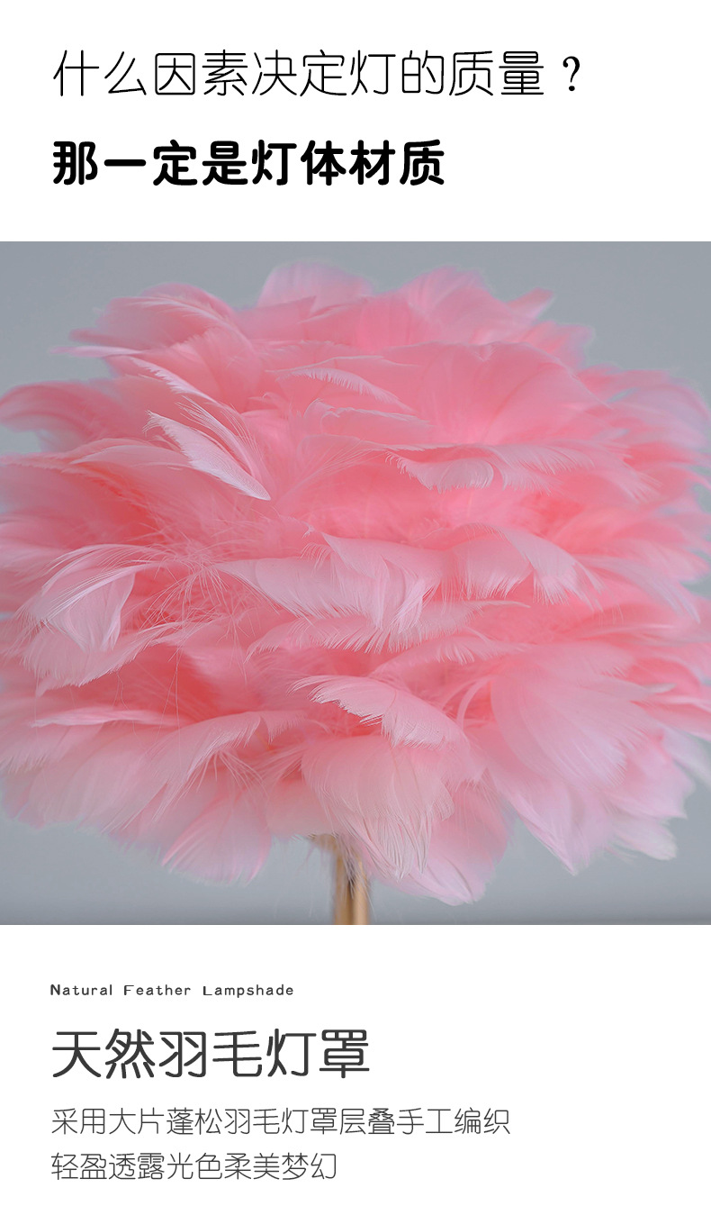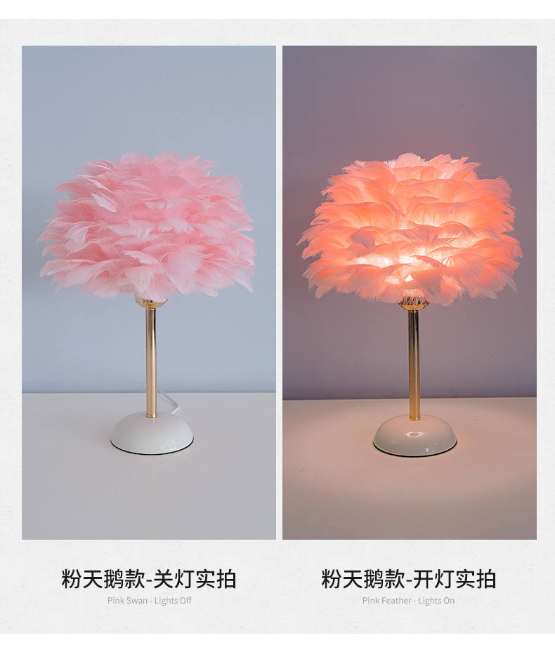 가벼운 고급 깃털 테이블 램프 고급 침실 침실 램프 북유럽 따뜻한 Ins 사이버 연예인 밤 빛 잠자는 깃털 램프