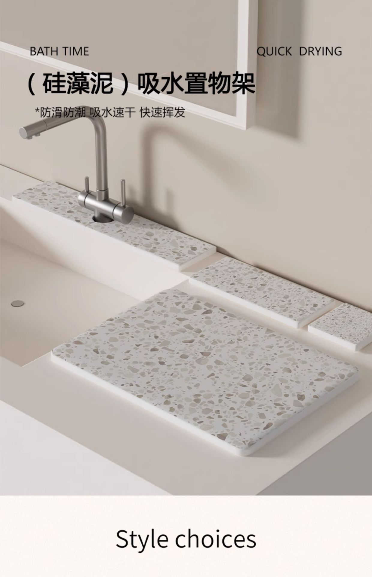 水磨石硬质硅藻泥吸水垫卫生间多功能台面水池水龙头垫洗漱茶杯垫