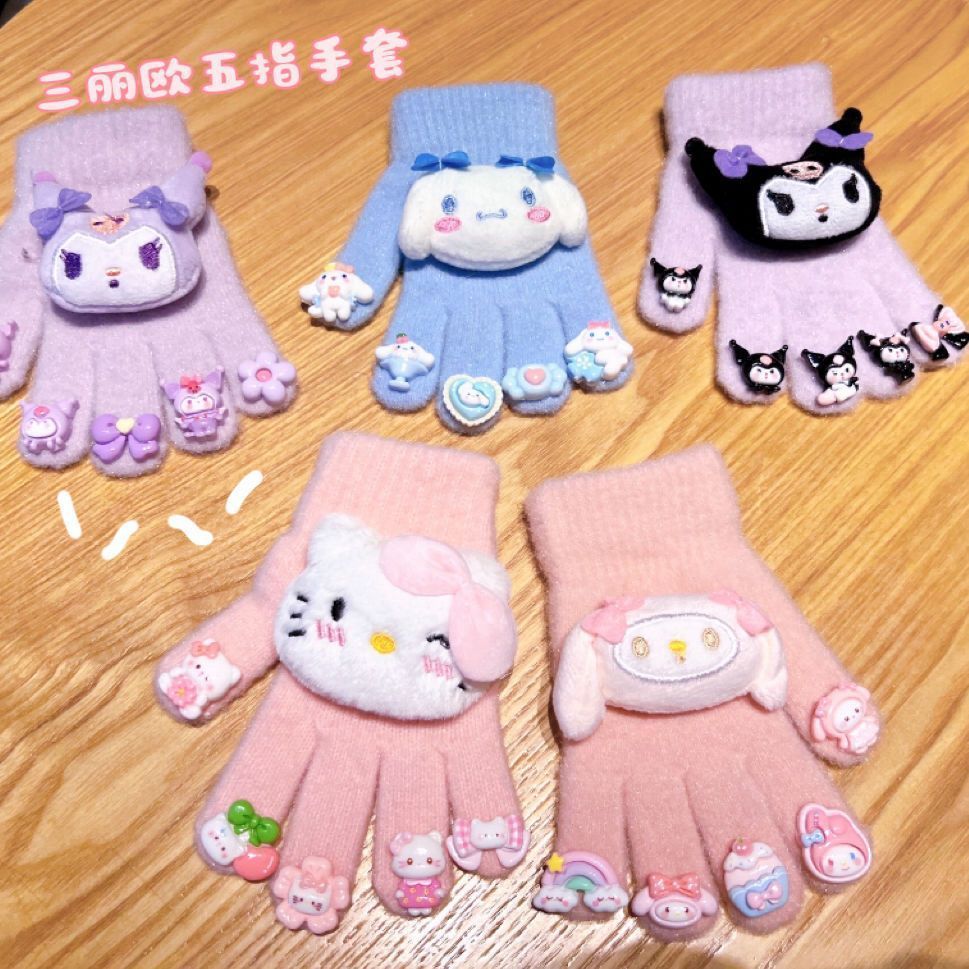 어린이 장갑 2024 겨울 소녀 5 손가락 세트 따뜻한 Kulomi 따뜻한 세트 어린 소녀의 기모 따뜻한 감기