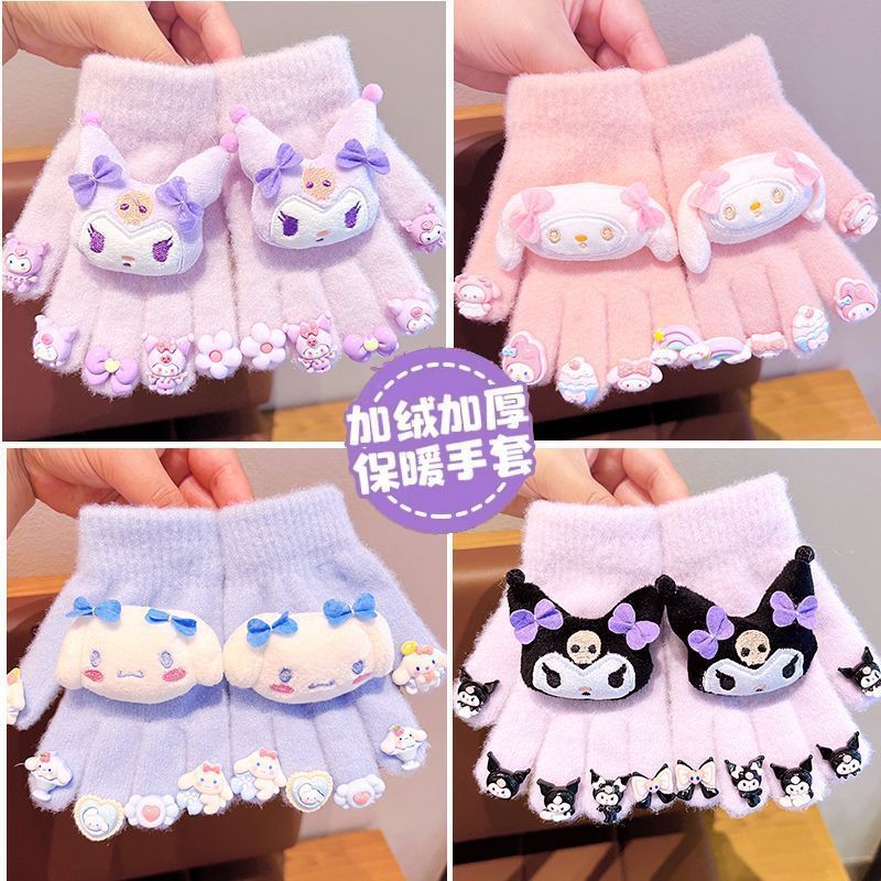 어린이 장갑 2024 겨울 소녀 5 손가락 세트 따뜻한 Kulomi 따뜻한 세트 어린 소녀의 기모 따뜻한 감기스토어 가기