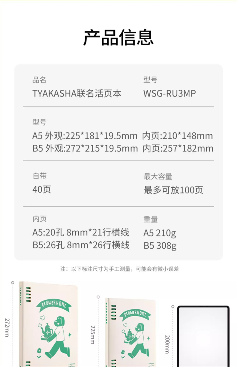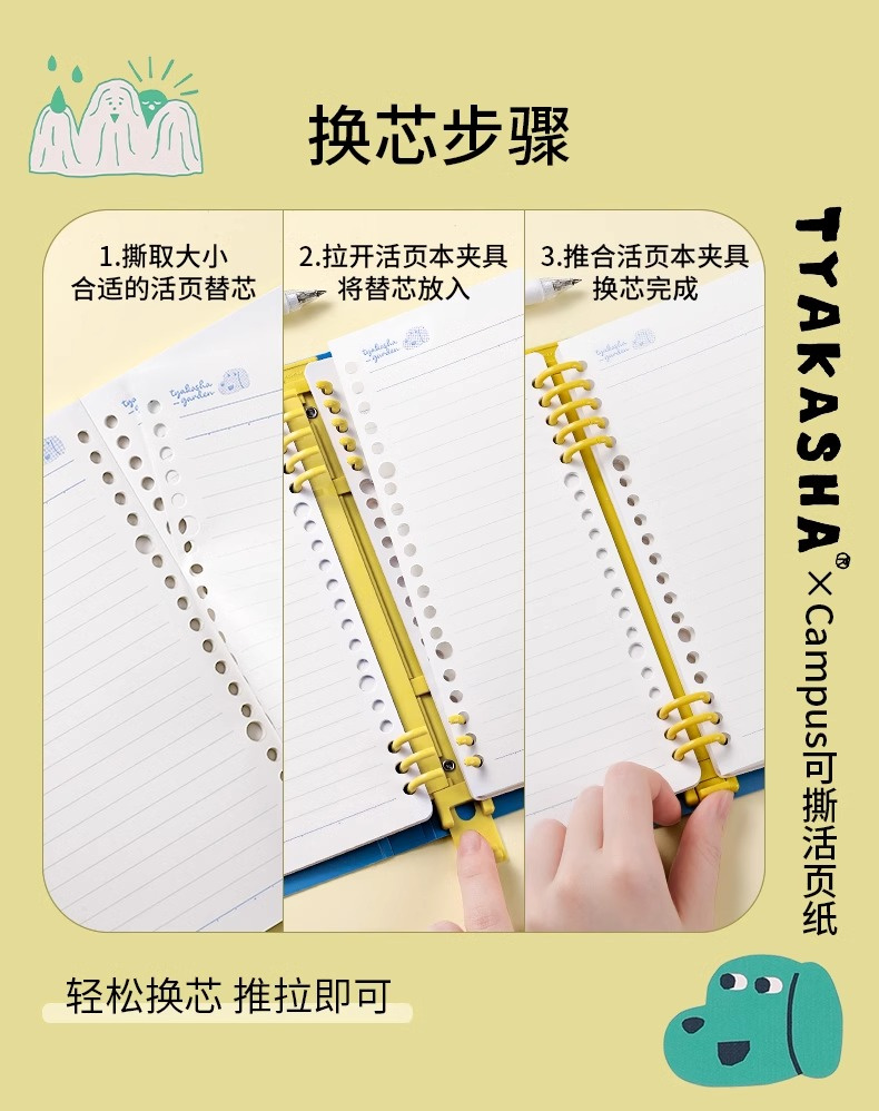 새로운 Takasha 공동 브랜드 느슨한 잎 제한된 노트북 학생 분리 가능한 클립스토어 가기