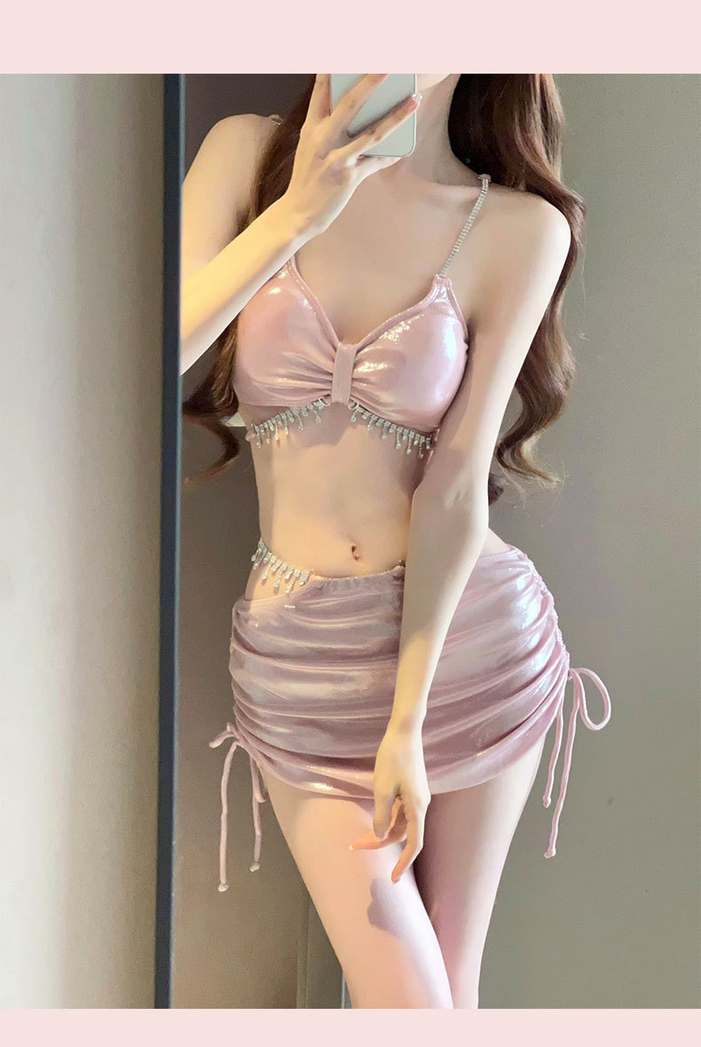 2025 새로운 비키니 수영복 여성 섹시한 3 피스 세트 라인스톤 순수한 욕망 높은 수준의 휴가 온천 휴가