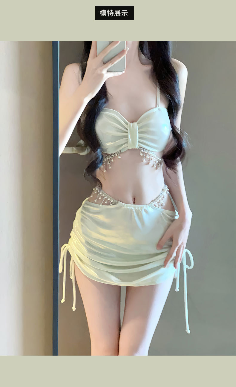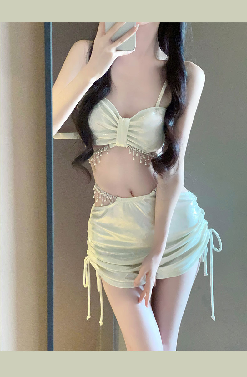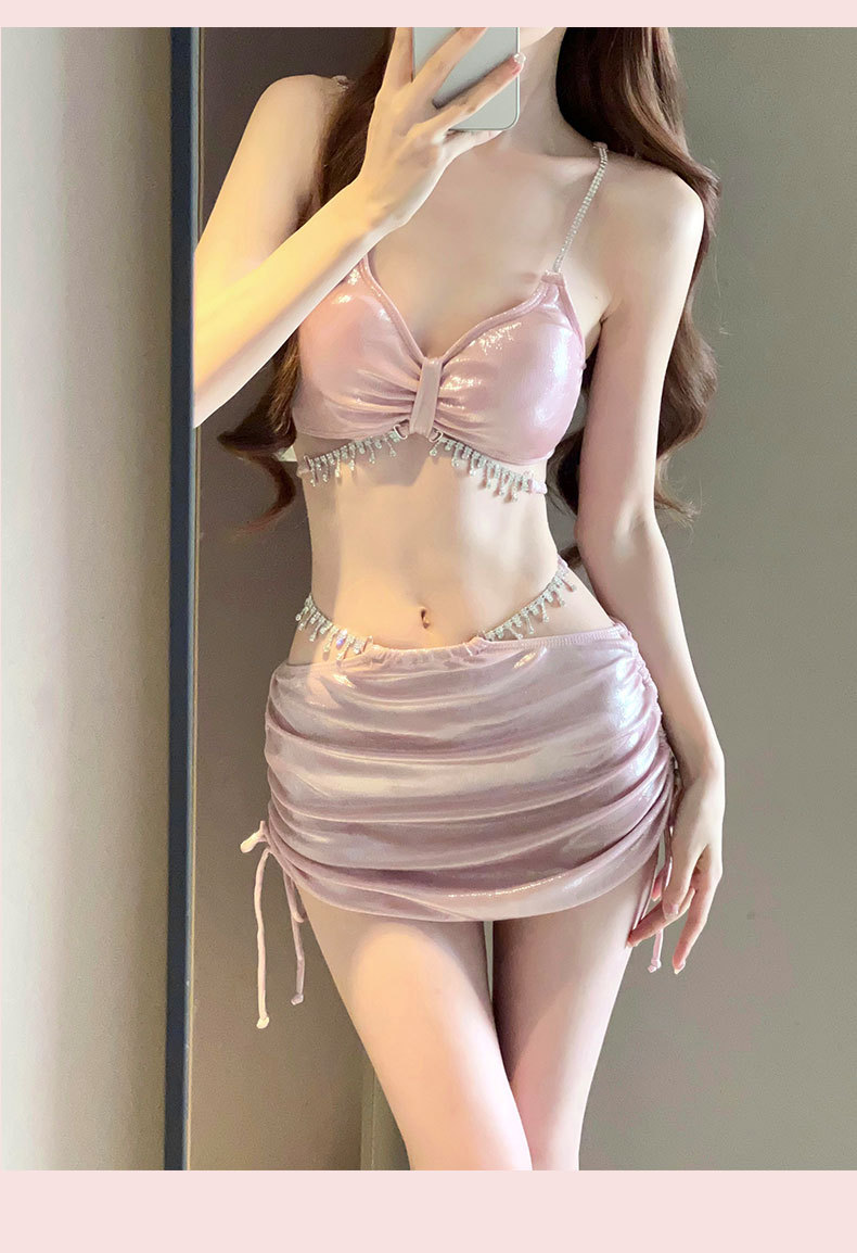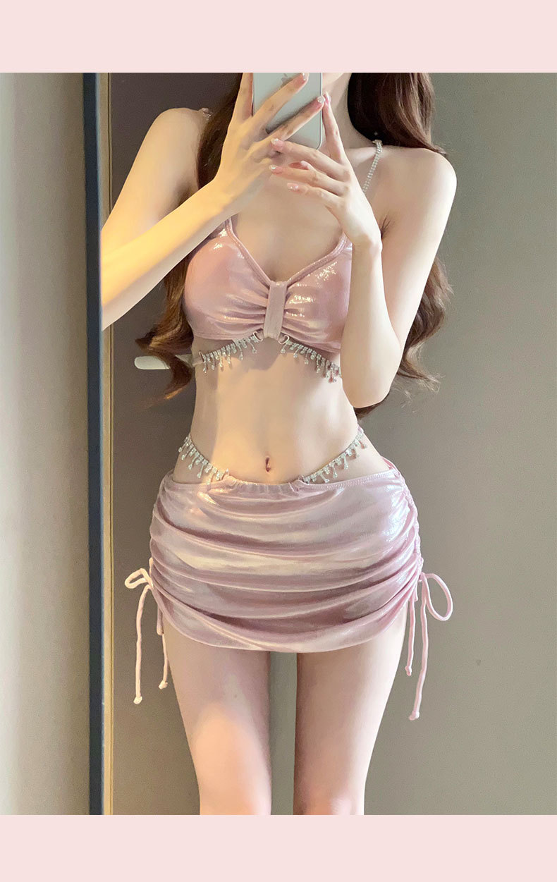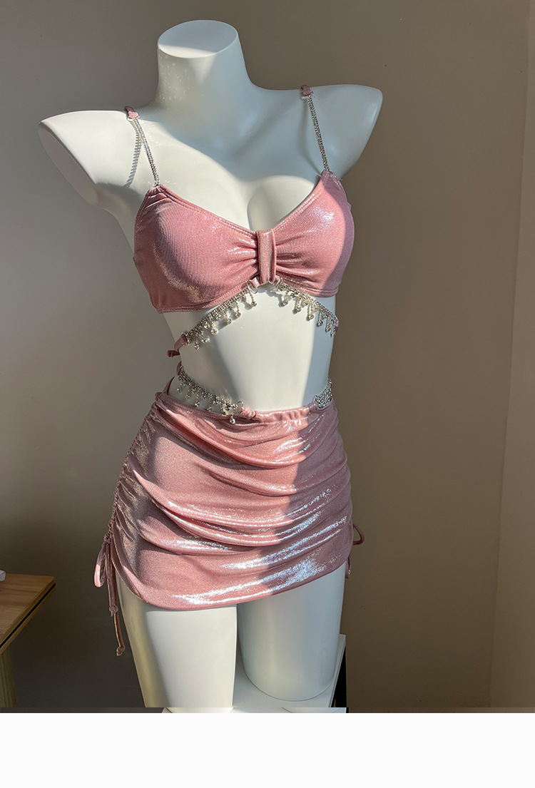 2025 새로운 비키니 수영복 여성 섹시한 3 피스 세트 라인스톤 순수한 욕망 높은 수준의 휴가 온천 휴가스토어 가기