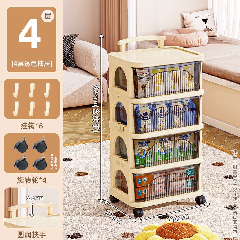 • 4단 수납장, 높이 1개, 짧은 3개 [투명 검정색]