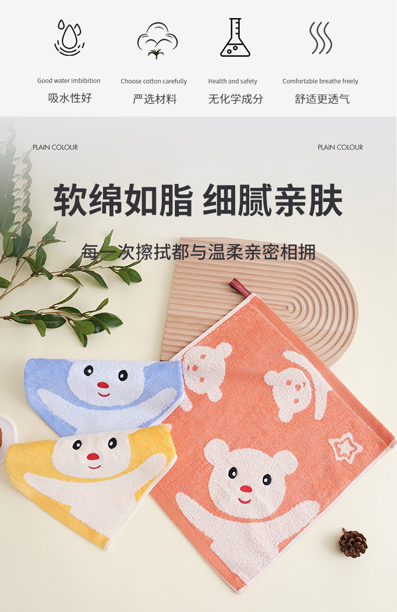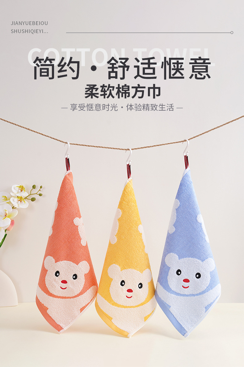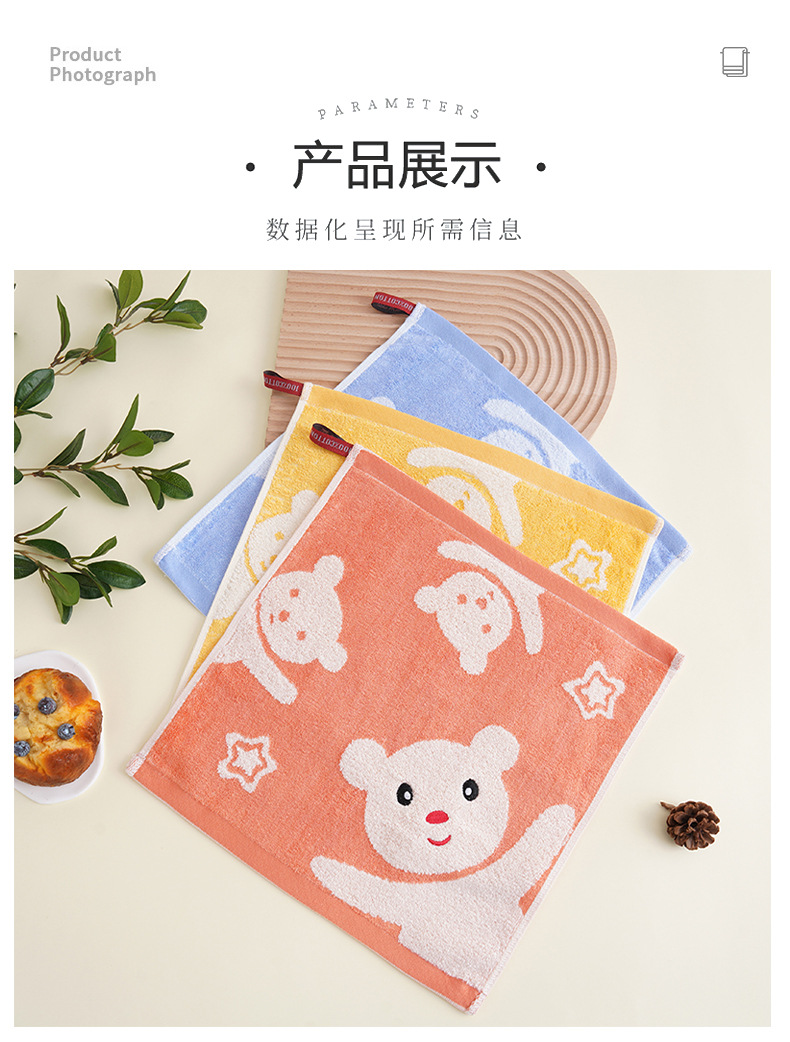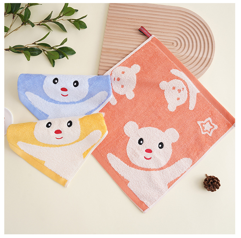 어린이용 타월 가정용 부드러운 만화 얼굴 수건 유치원용 곰돌이 흡수성 순면 사각 타월 도매스토어 가기