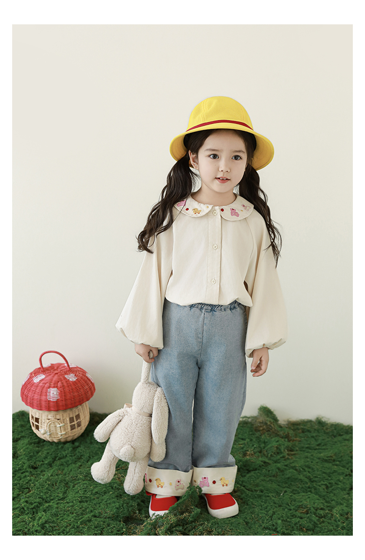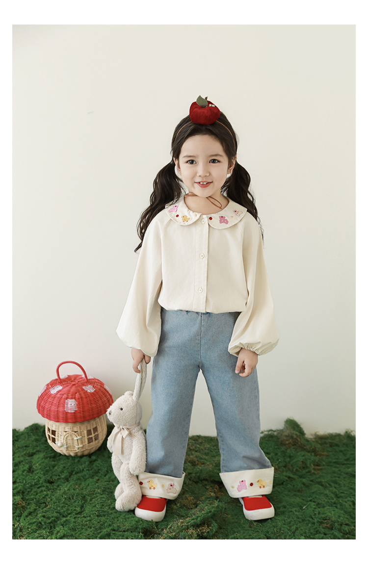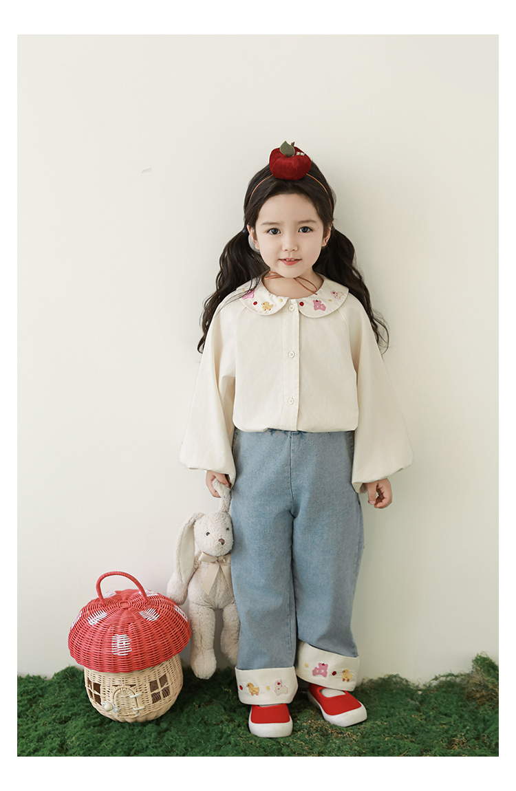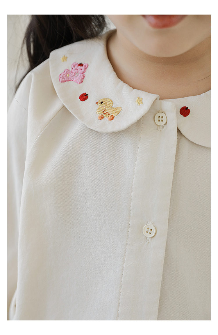 Wulibuyi 소녀 달콤하고 잘 행동하는 인형 옷깃 셔츠 가을 귀여운 만화 자수 캐주얼 셔츠스토어 가기
