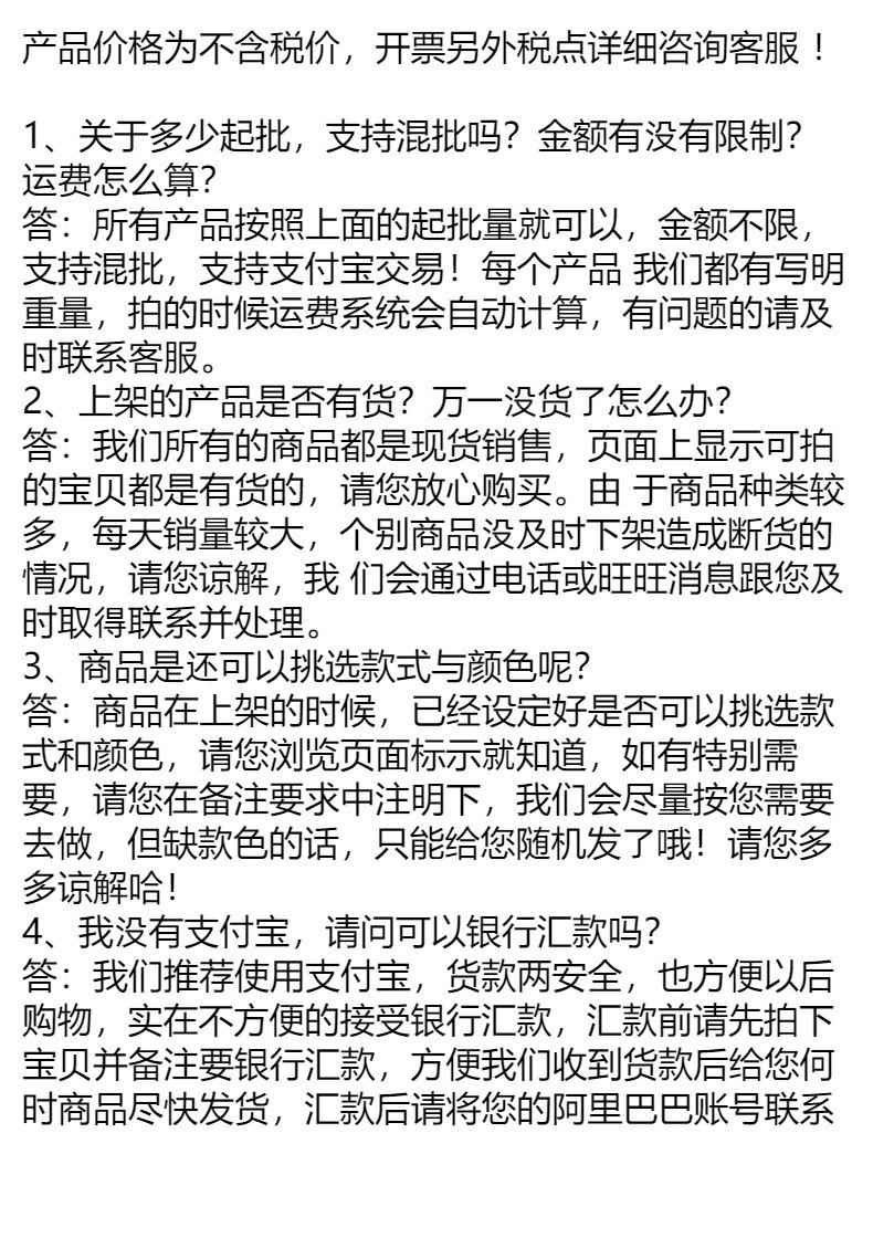 1688온라인 사이트에서 검색된 상품입니다. 알리타플에서는 상품검색/현지구매(구매대행)/국제배송 업무만 제공해드립니다. 해당 상품의 품질 및 상태에 대해서는 확인해 드릴 수 없고 해당 물건이 입고가 된 후에 검수과정을 거쳐야 확인이 가능합니다.