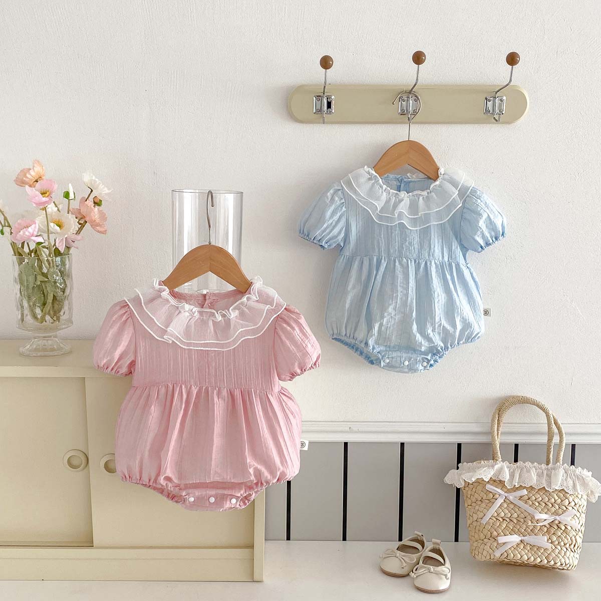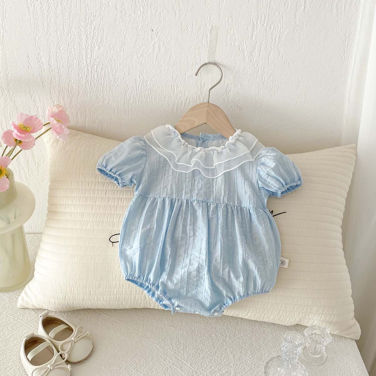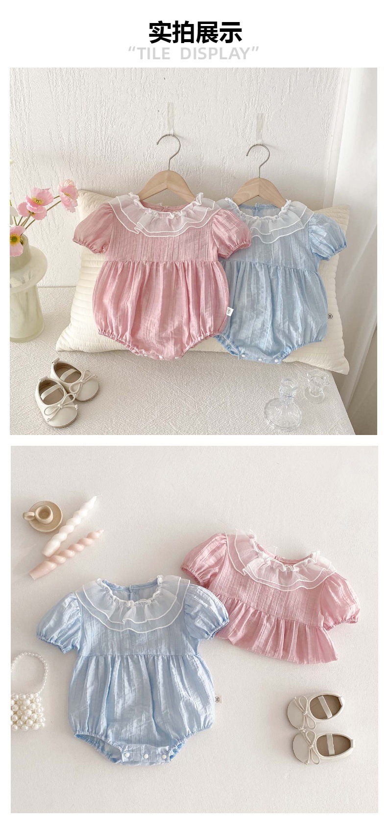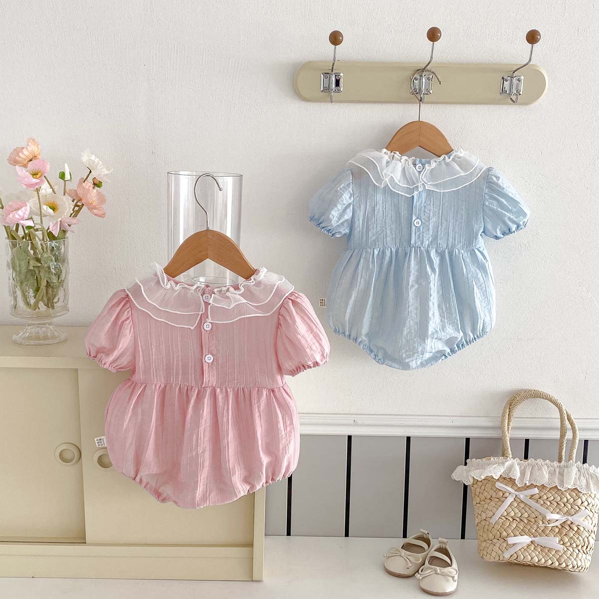 소녀의 여름 새 퍼프 소매 반팔 포장 뚱뚱한 옷 아기의 달콤한 레이스 인형 목걸이 점프 수트스토어 가기