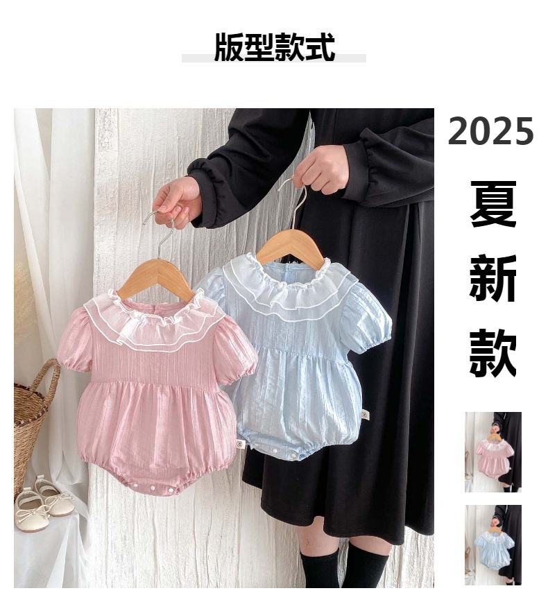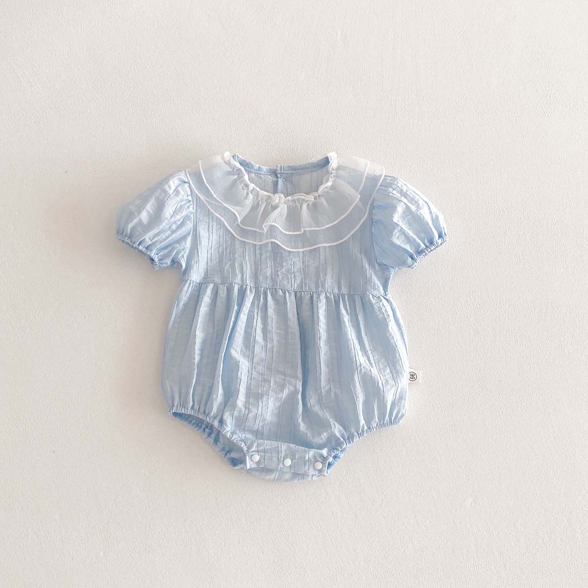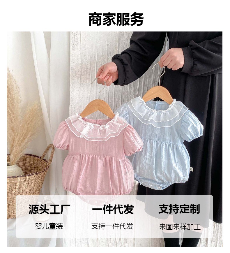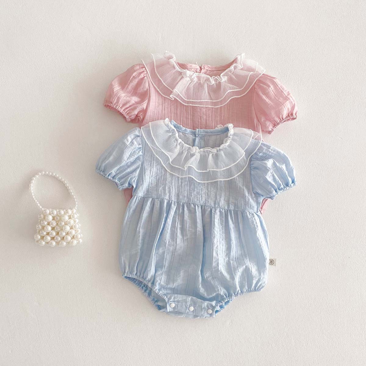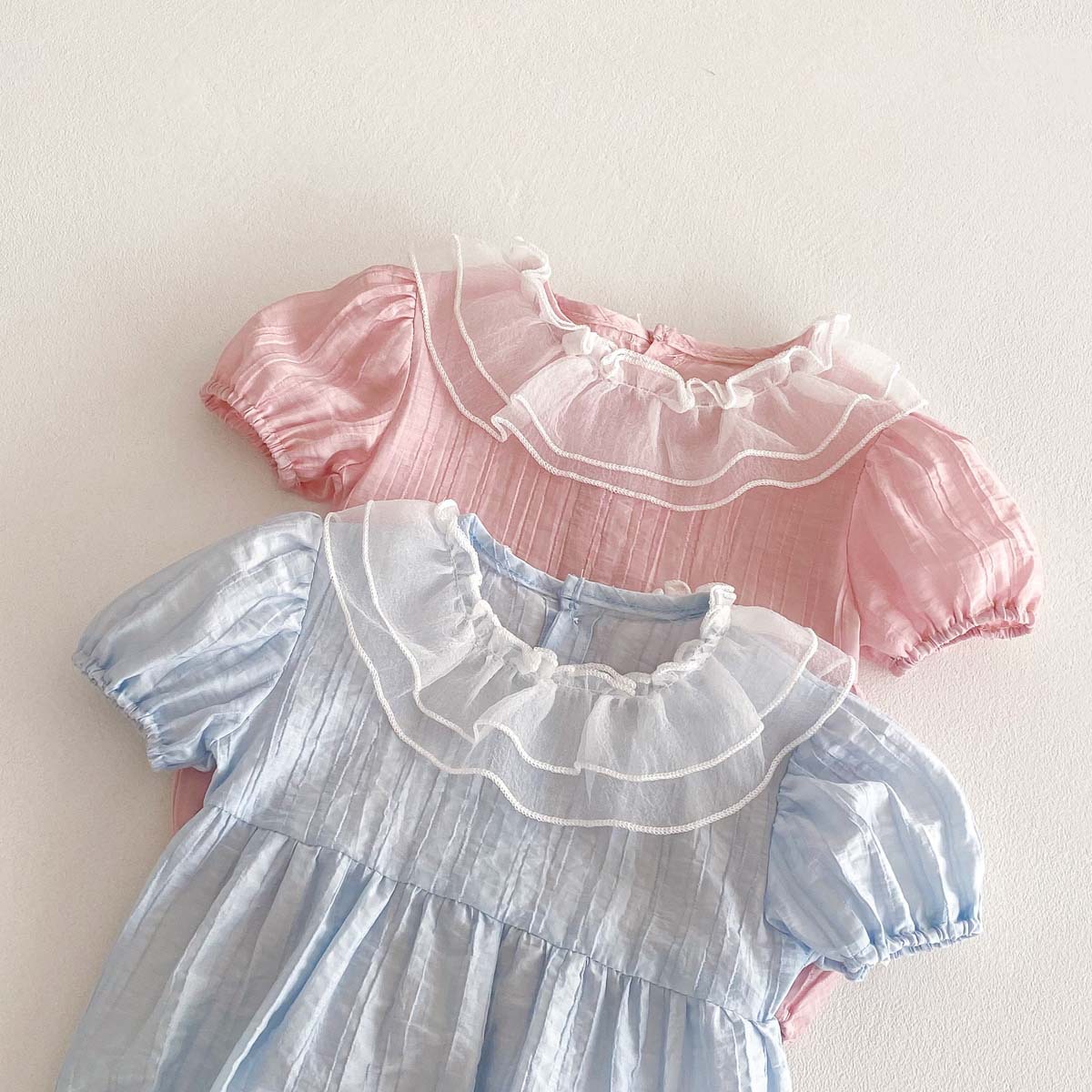 소녀의 여름 새 퍼프 소매 반팔 포장 뚱뚱한 옷 아기의 달콤한 레이스 인형 목걸이 점프 수트스토어 가기