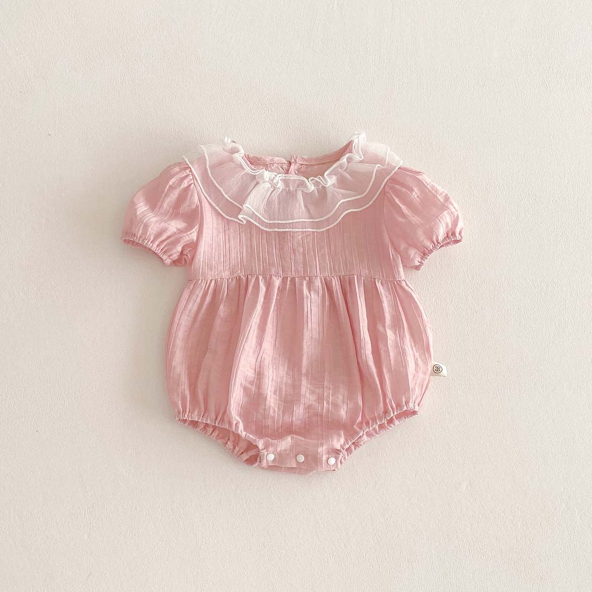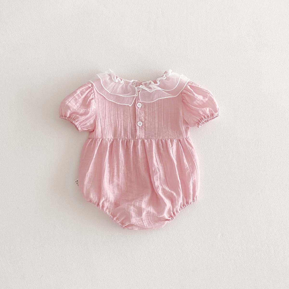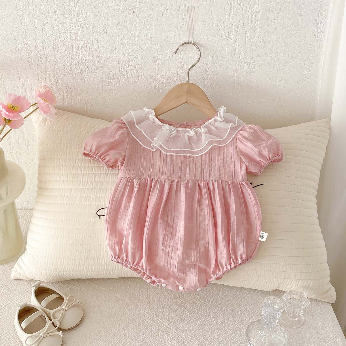 소녀의 여름 새 퍼프 소매 반팔 포장 뚱뚱한 옷 아기의 달콤한 레이스 인형 목걸이 점프 수트