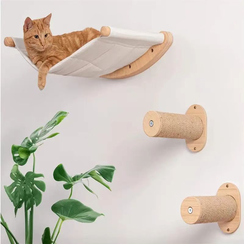 원목 벽걸이형 고양이 클라이밍 프레임, 벽면 목재 장식, 고양이 스프링보드, 고양이 스크래치 기둥, 고양이 벽면 일체형 침대