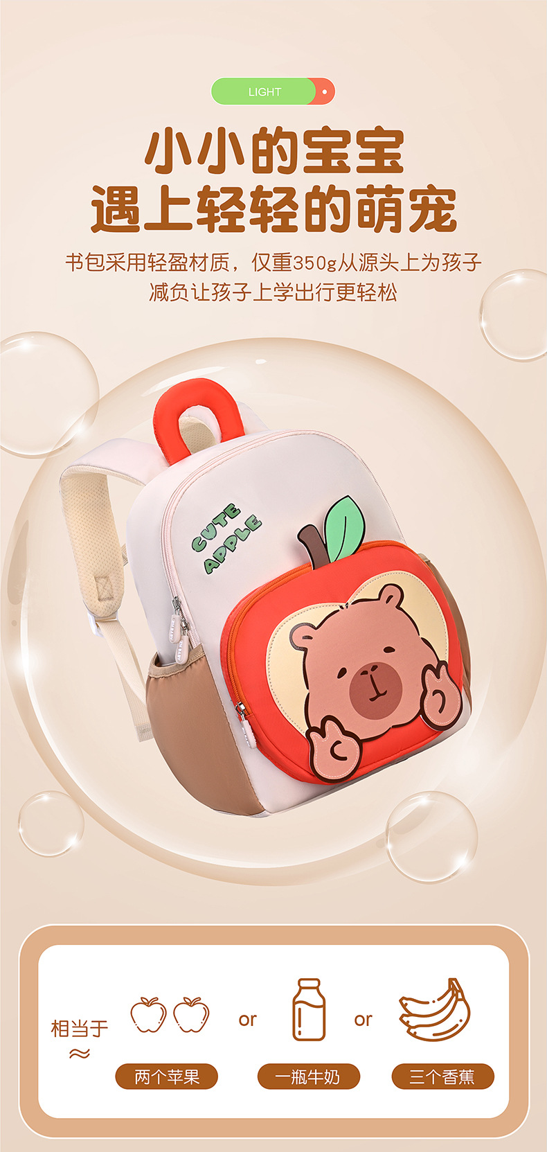 3-6 세 아기 가방 경량 귀여운 미니 참깨 아기 새 유치원 소년 소녀를위한 만화 학교 가방