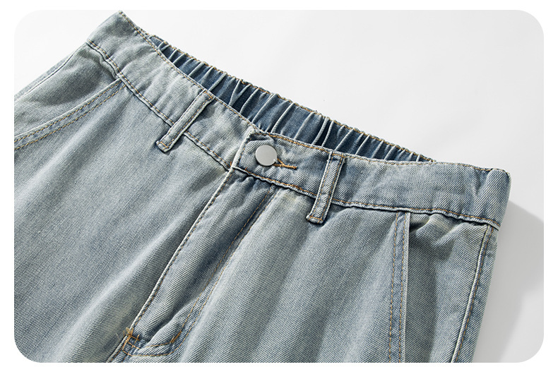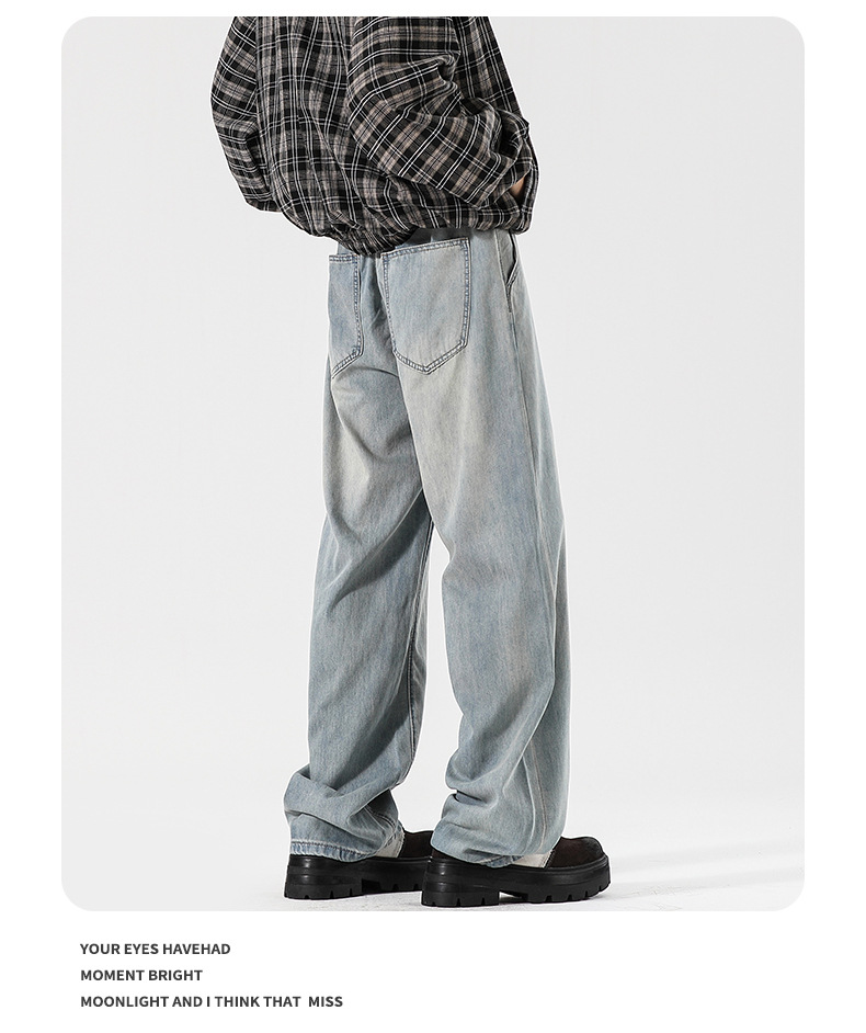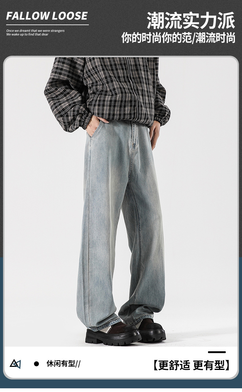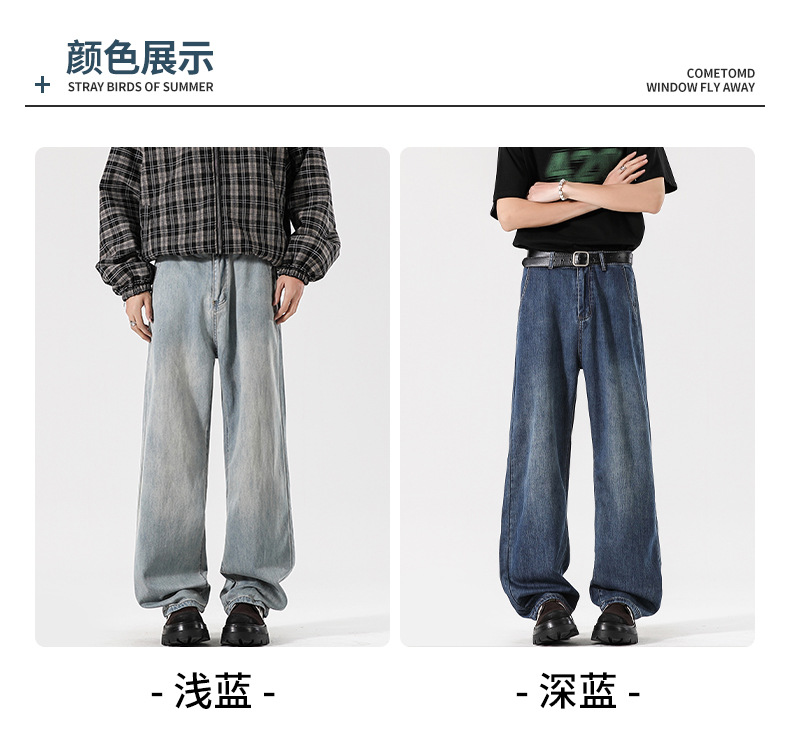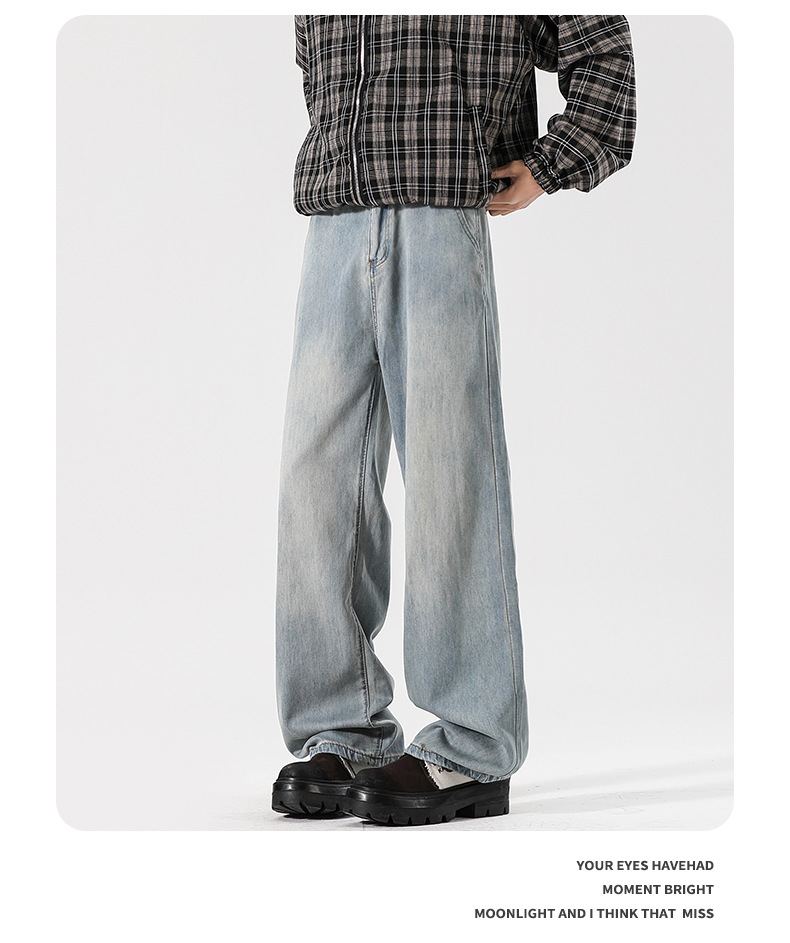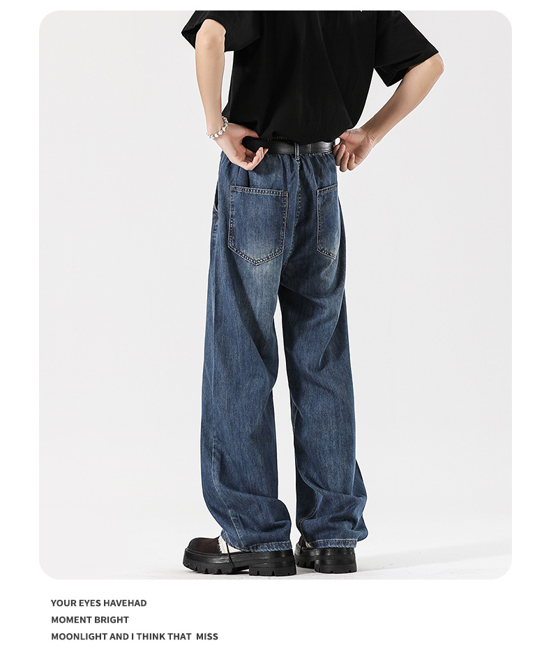 Muqiu 남성복 ∠ Tencel 얇은 청바지 남성용 Vibe Lyocell 레트로 느슨한 오래된 넓은 다리 바지스토어 가기
