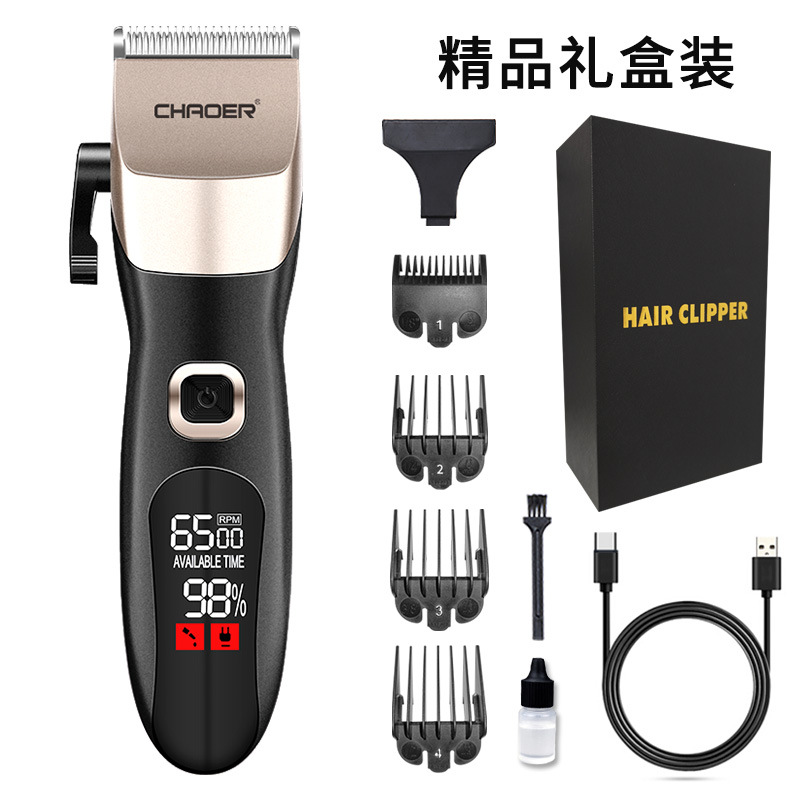 产品配件:礼品包装盒、说明书、四个限位梳、一根Type-C充电线、一瓶润滑油、一根清洁刷