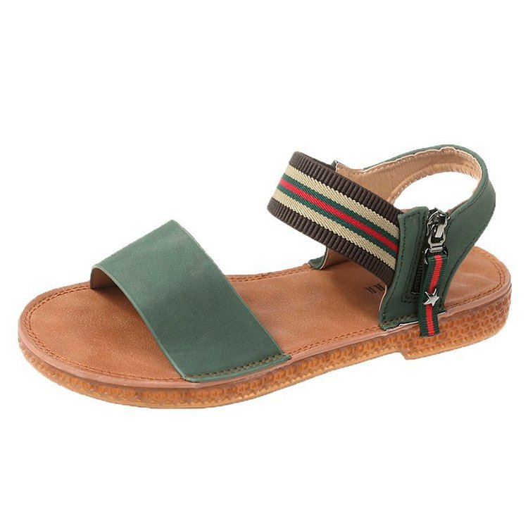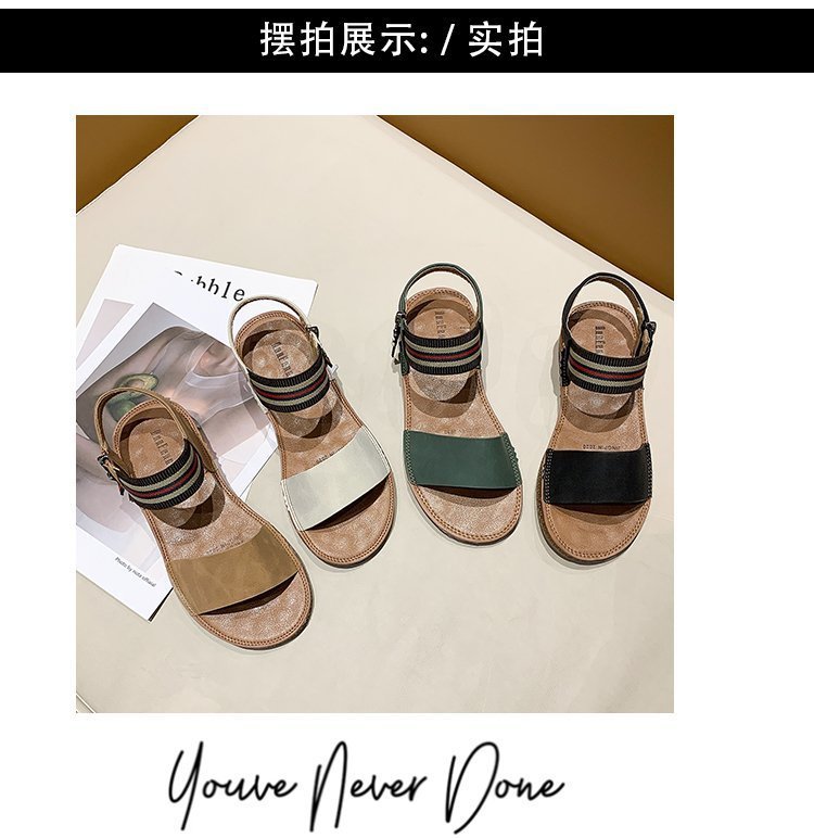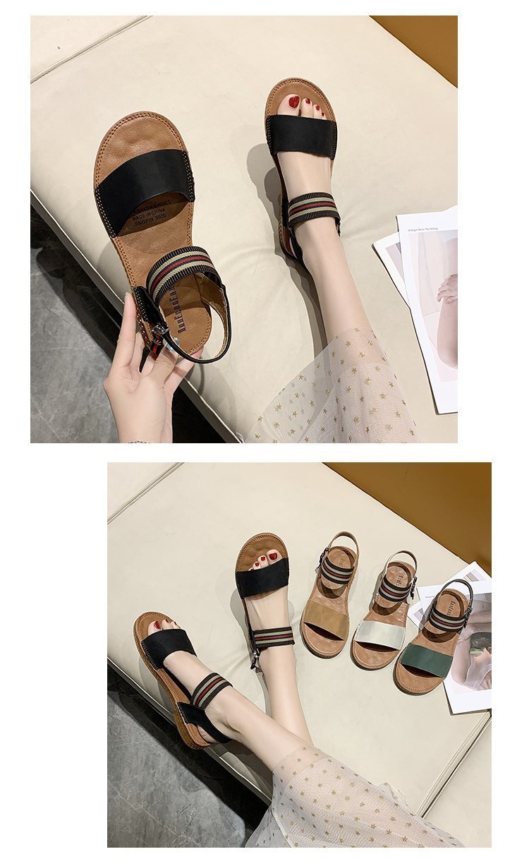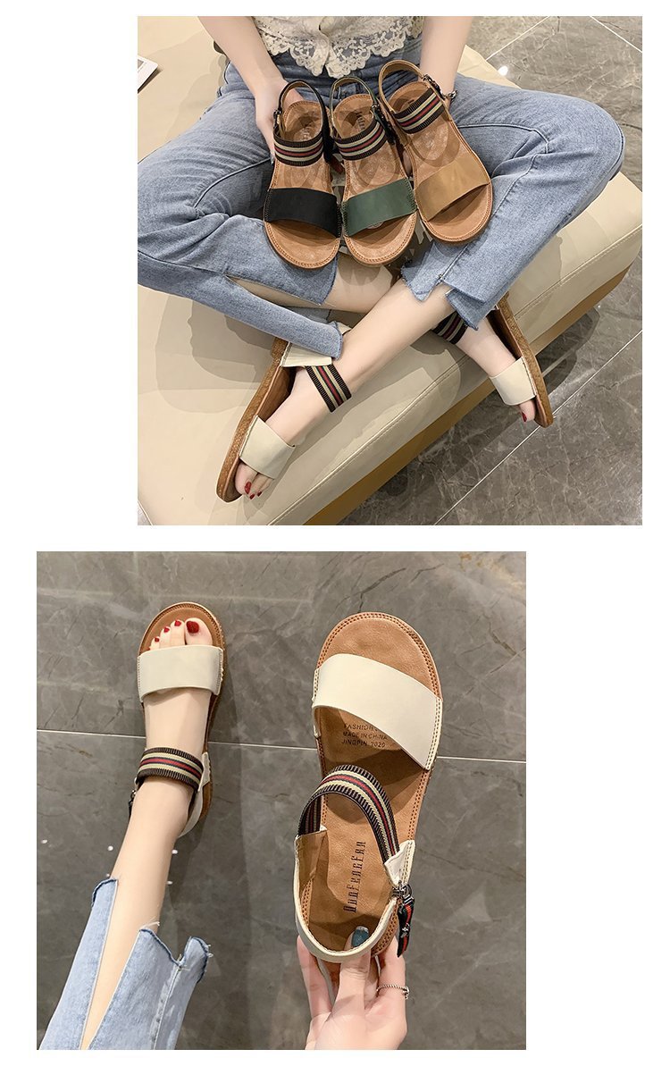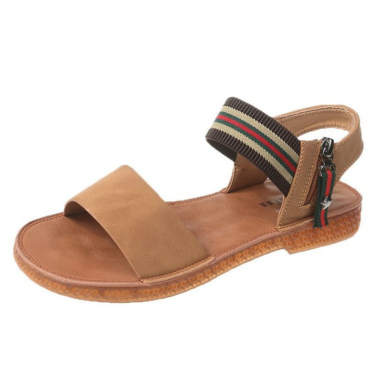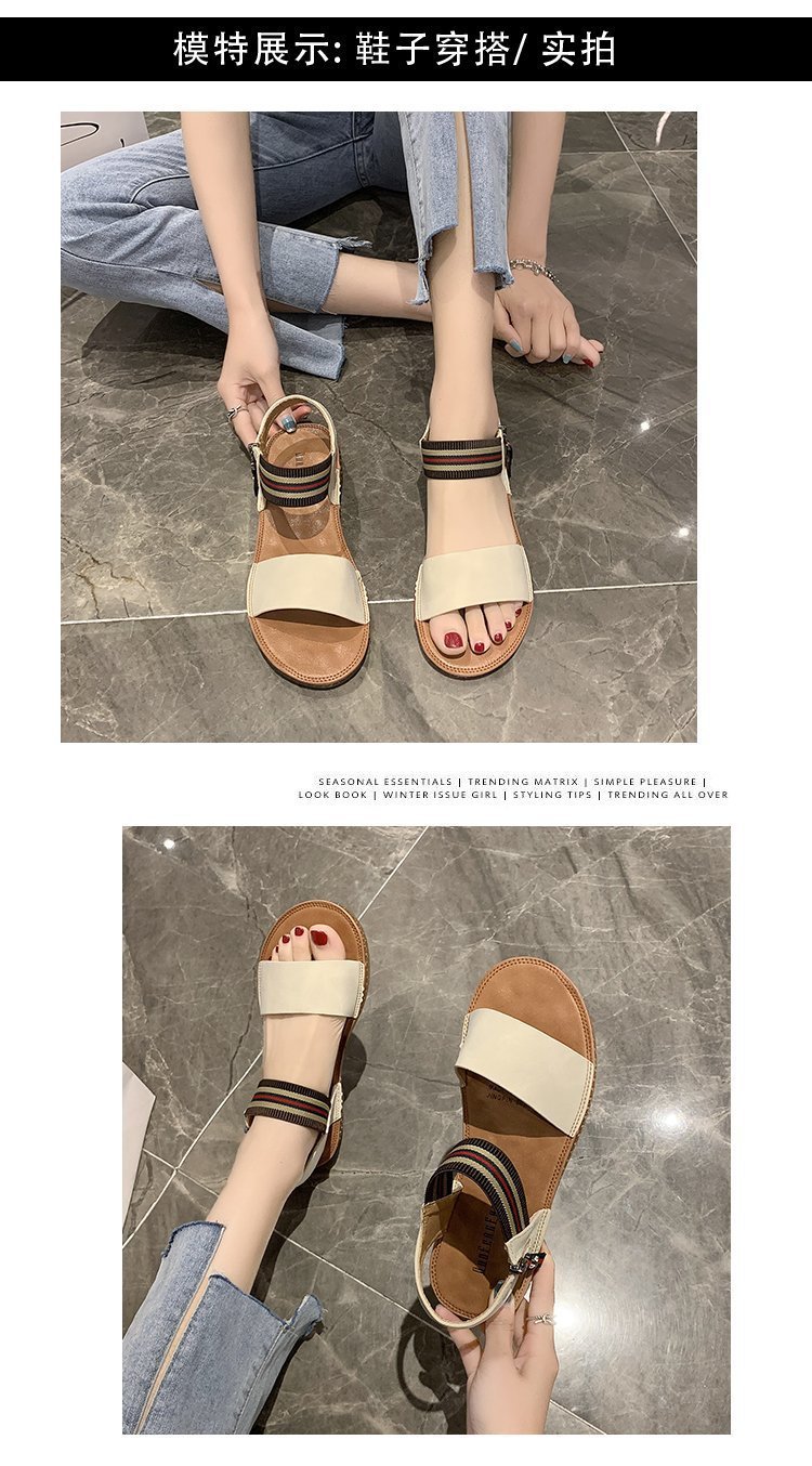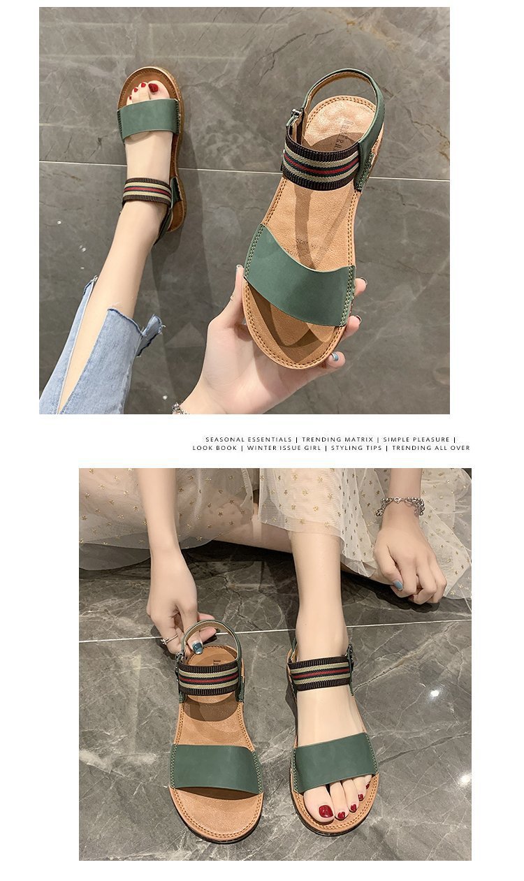 임신 한 여성과 학생을위한 봄 2025 새로운 스타일의 소녀 스타일 샌들 쇠고기 텐더 소프트 단독 미끄럼 플랫 단독 신발스토어 가기