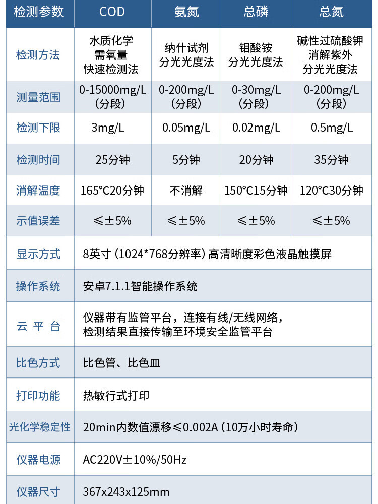 수질 COD 검출기 하수 암모니아 질소 총 인 총 질소 분석 휴대용 다중 매개 변수 중금속 BOD 검출기스토어 가기