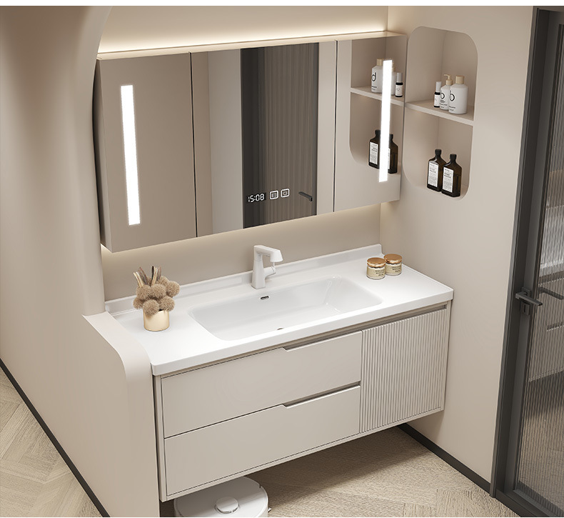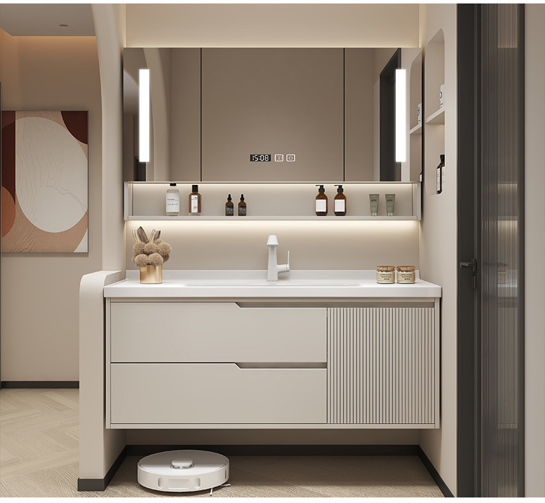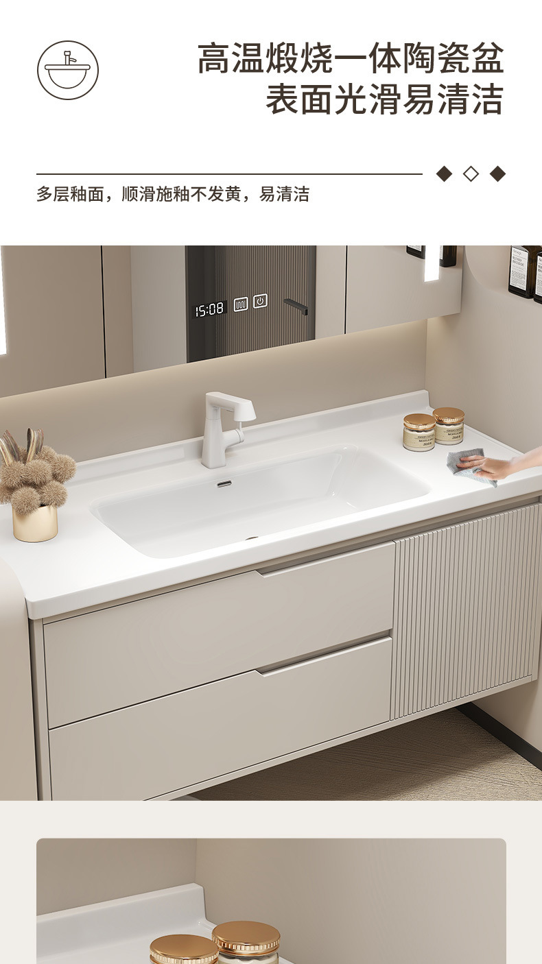 오크 베이킹 페인트 욕실 캐비닛 욕실 크림 바람 세척 간단한 지능형 세면대 싱크대 세라믹 올인원 분지
