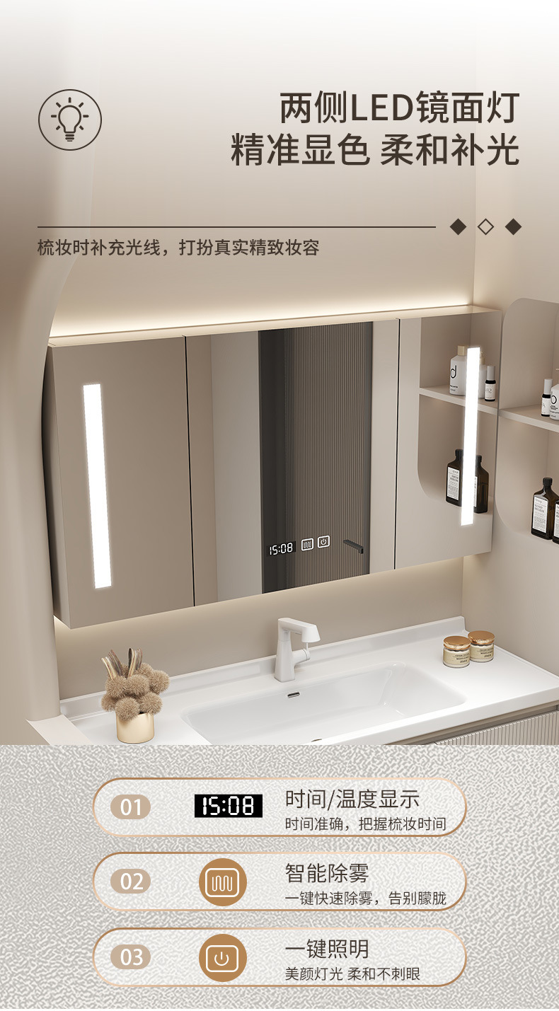• 오크 스마트 하단 체크무늬 거울장 - 챔피언 지지 품질 - 오크 1.0m - 인터넷 연예인 수도꼭지 - 광동성 고품질 세라믹 세면대
