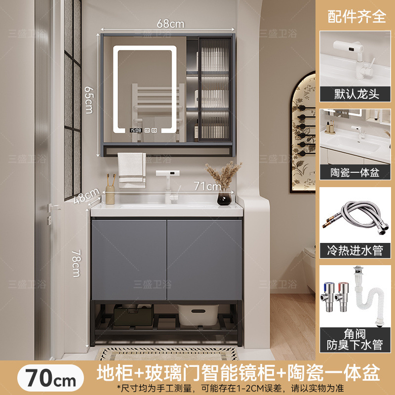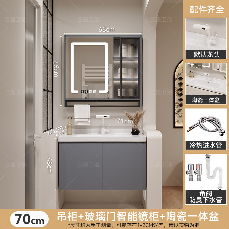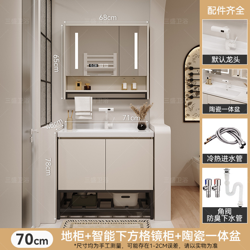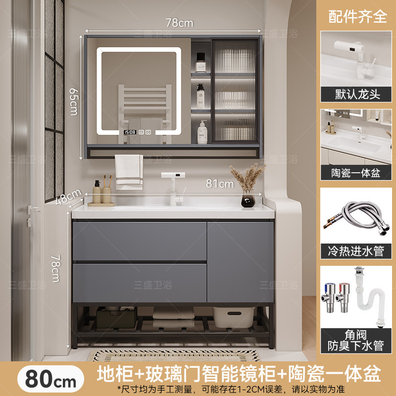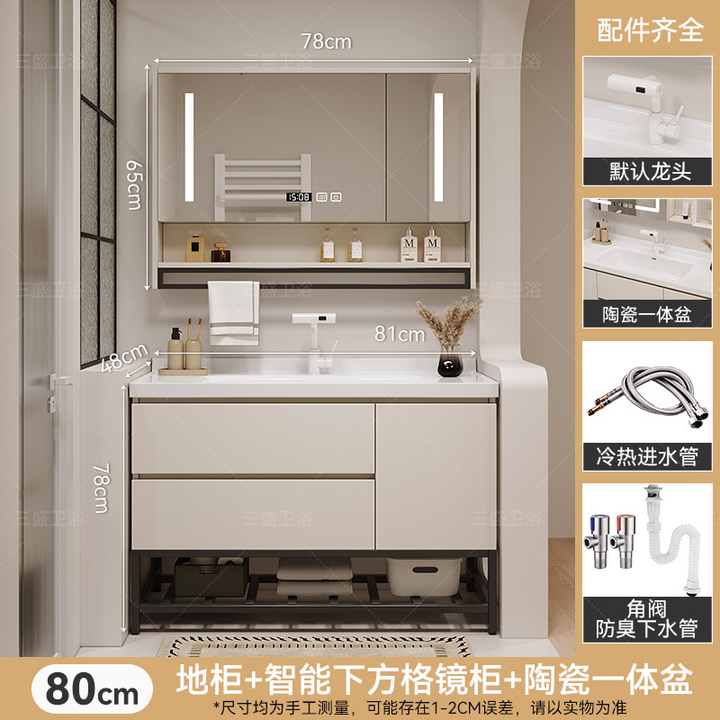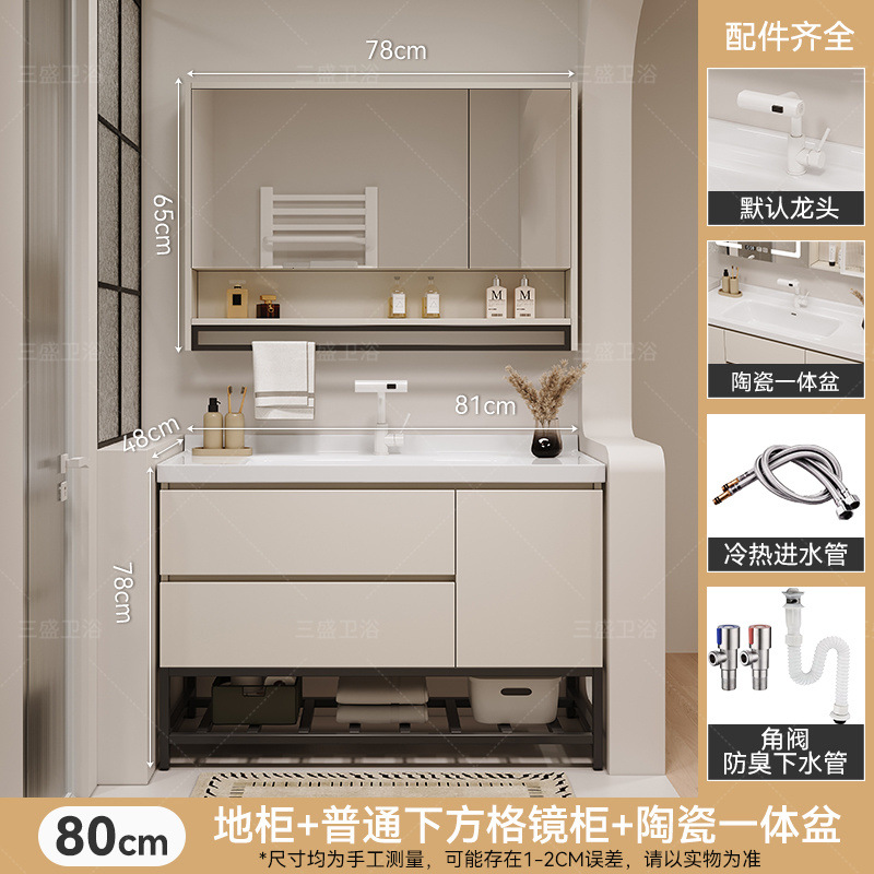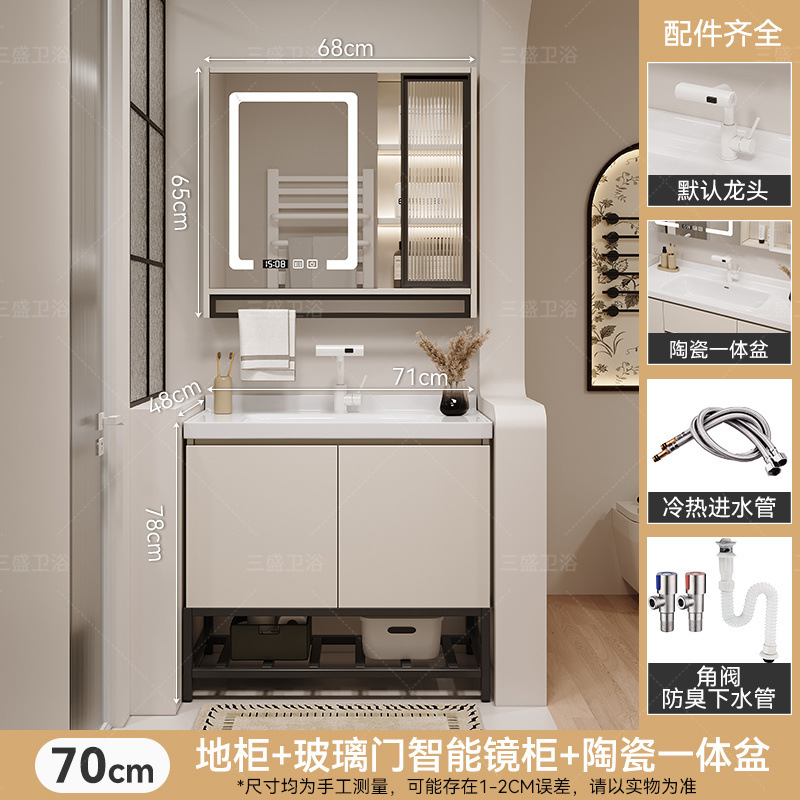 크림 바람 욕실 캐비닛 세라믹 통합 분지 간단한 세면대 세척 테이블 비행 비 폭포 수도꼭지 욕실스토어 가기