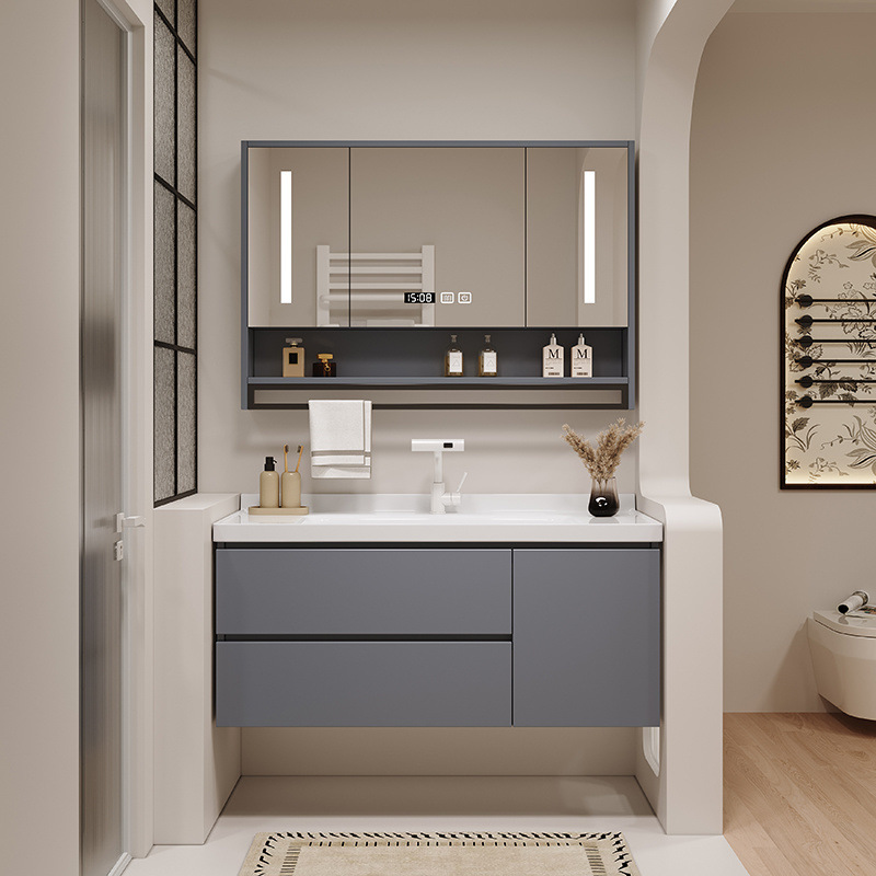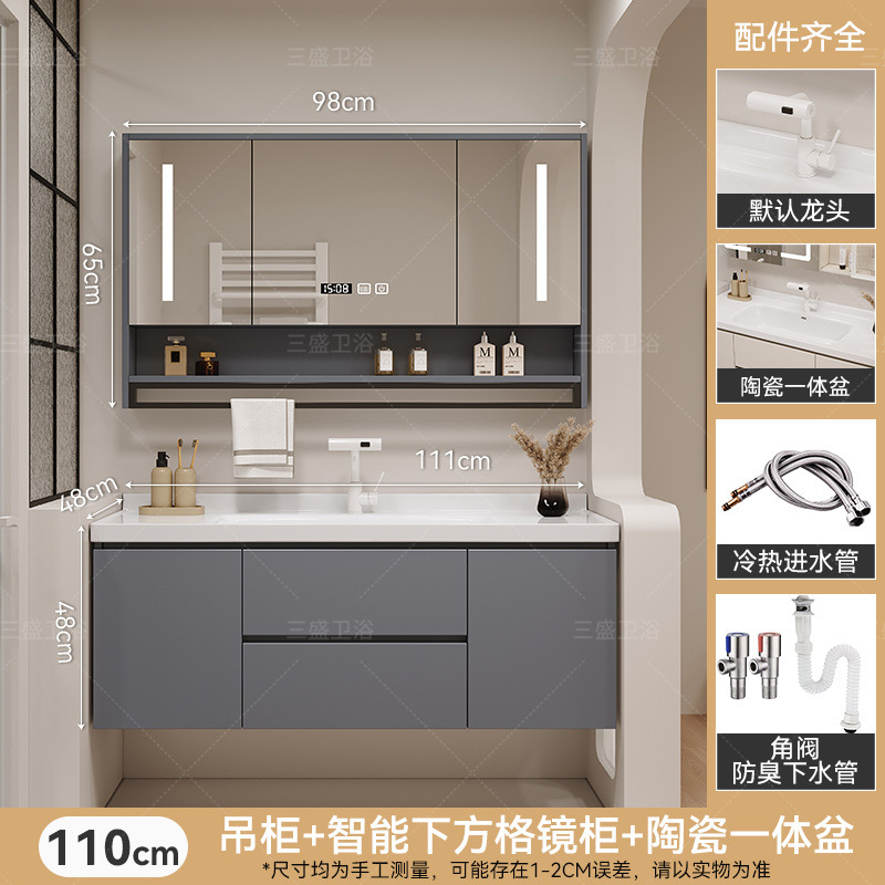 • 패셔너블한 그레이 하이 구성 - [수건걸이] 스마트거울장 - 110벽걸이형 - 양문형, 이중서랍 [레인댄스폭포수전]