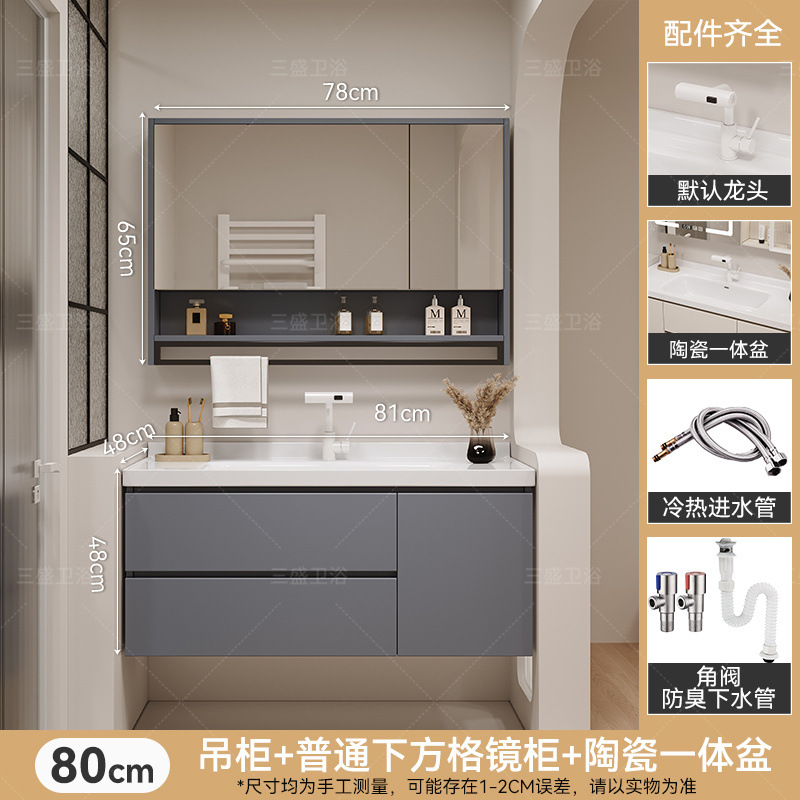 • 패셔너블한 그레이 레귤러 스타일 - [수건걸이] 일반거울장 - 80바닥형 - 1도어 더블드로 [레인댄스폭포수전]
