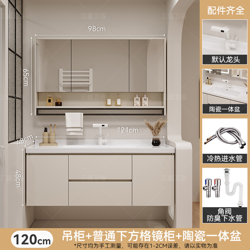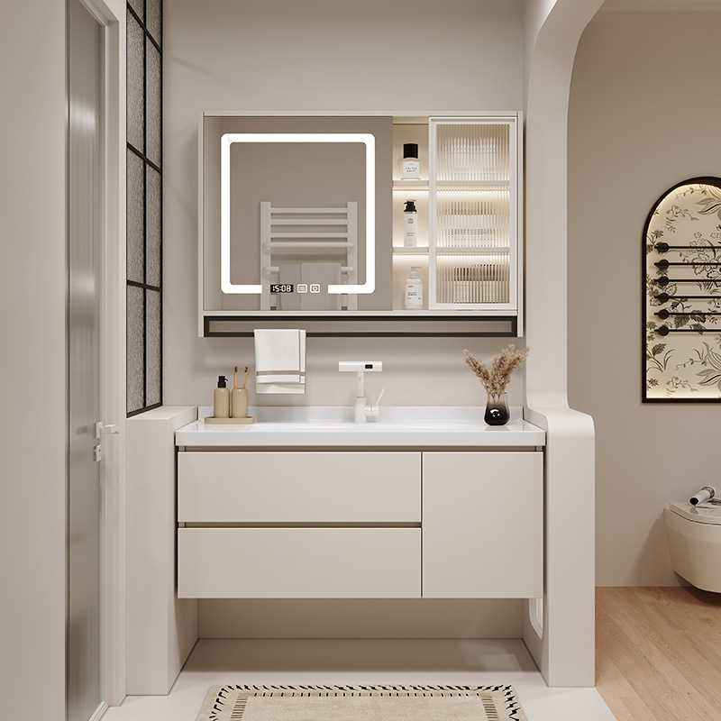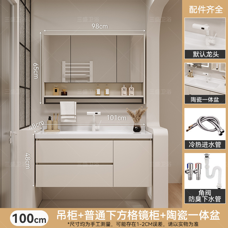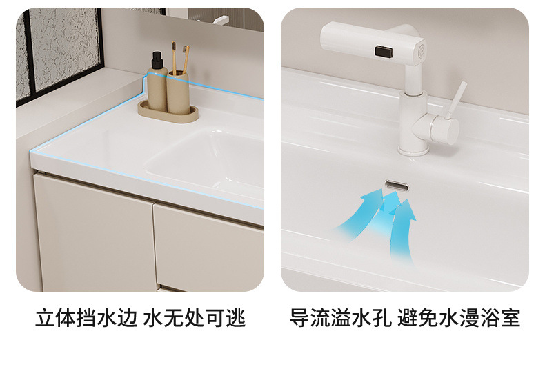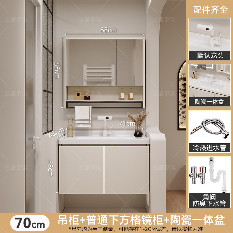 크림 바람 욕실 캐비닛 세라믹 통합 분지 간단한 세면대 세척 테이블 비행 비 폭포 수도꼭지 욕실
