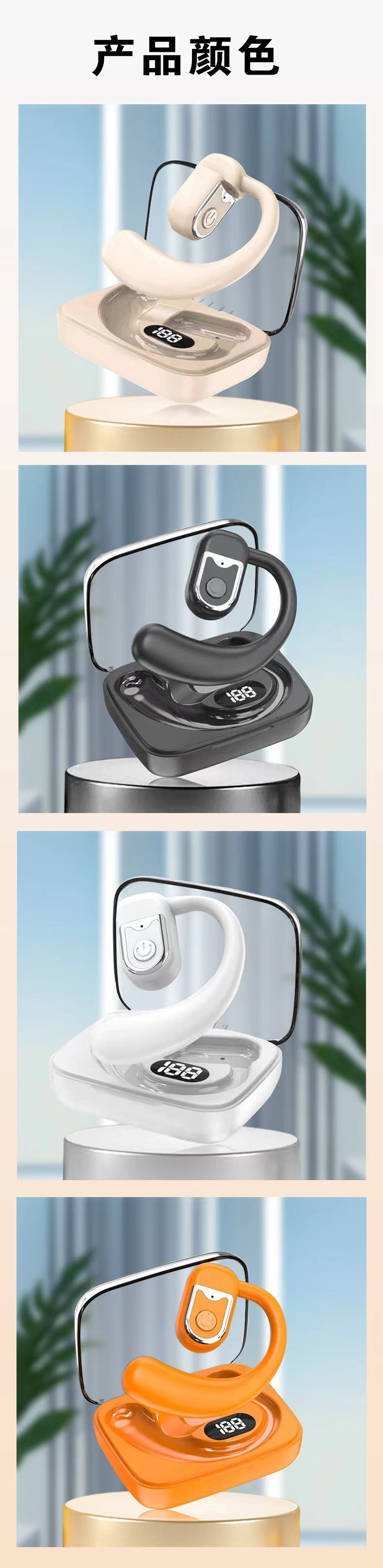 개인 모델 귀 매달린 블루투스 헤드셋은 귀에 들어 가지 않고 왼쪽 및 오른쪽 귀 회전을 열어 긴 내구성 도매를 위해 디지털 디스플레이를 착용합니다.스토어 가기