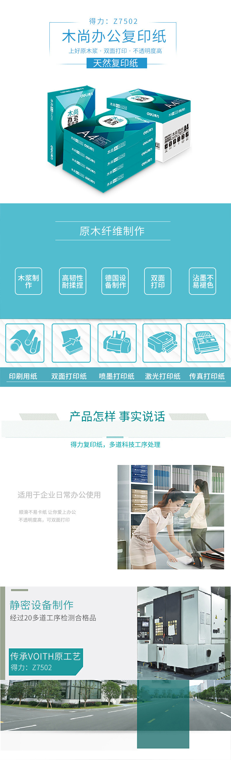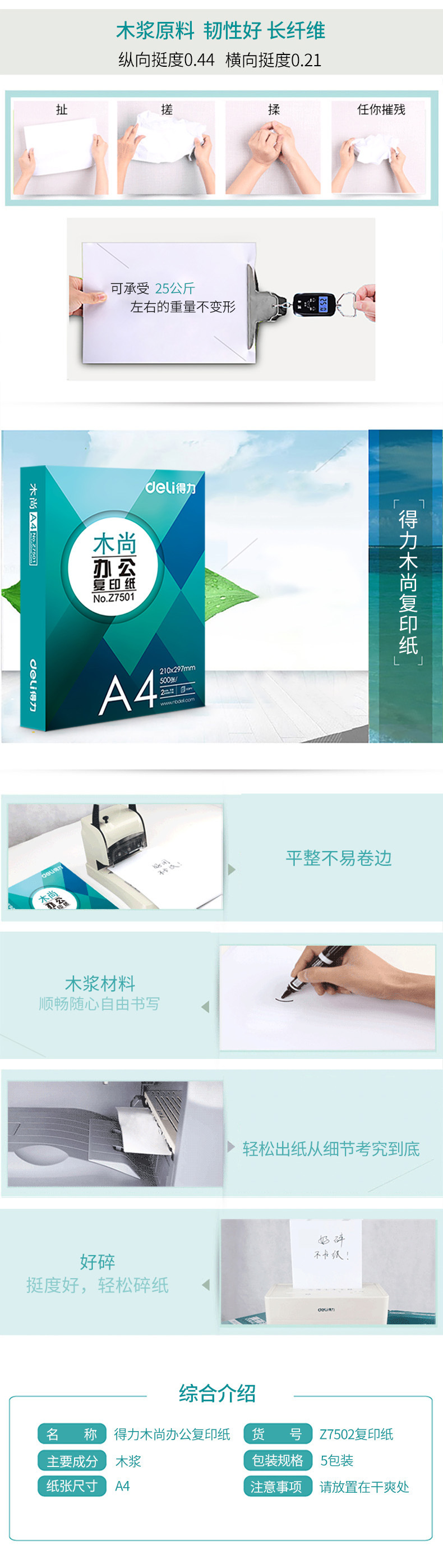 델리 Z7502 무상 복사 용지 A4/70g 80g 양면 인쇄 용지 사무용 용지 500매/팩